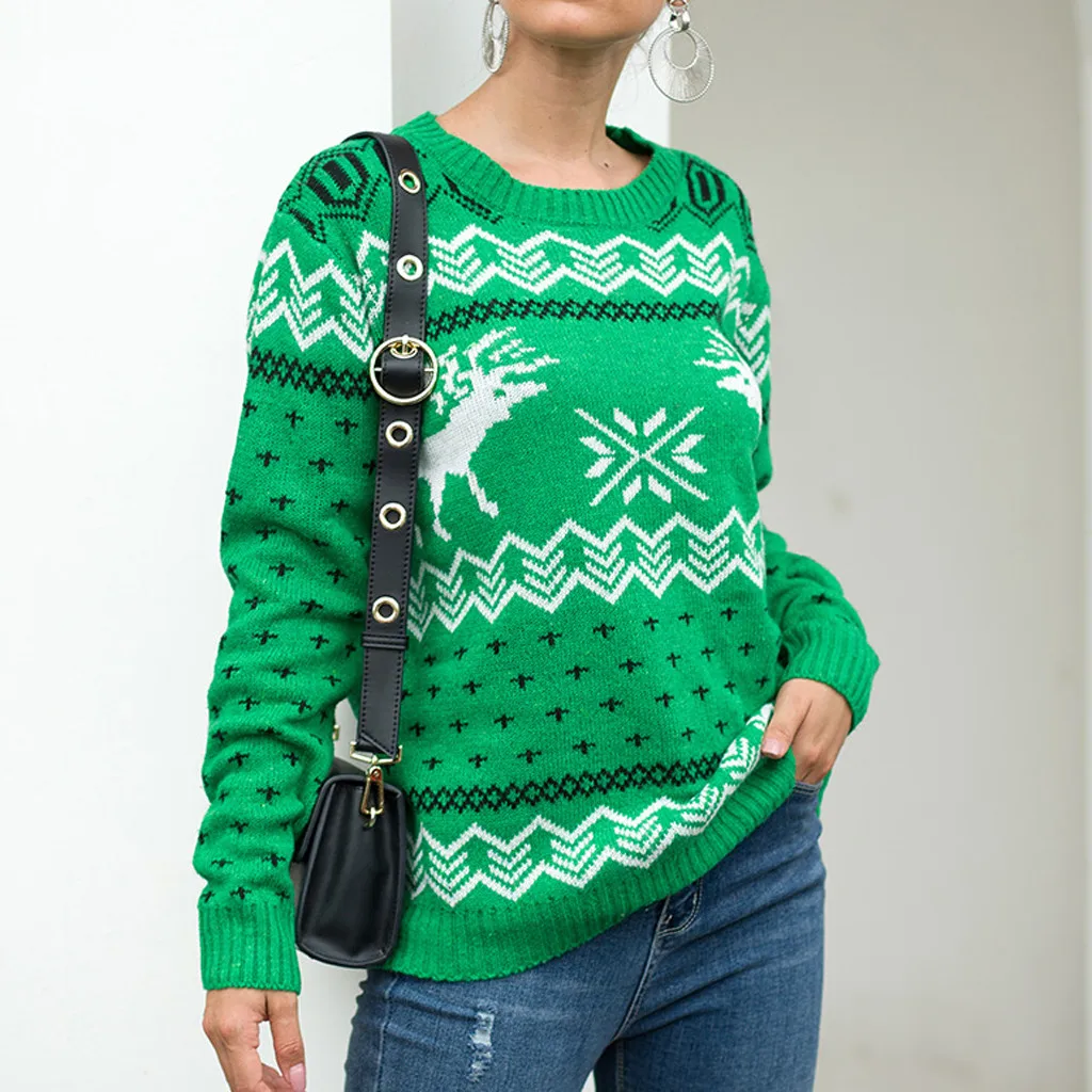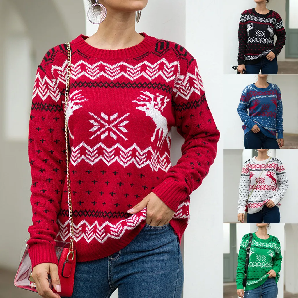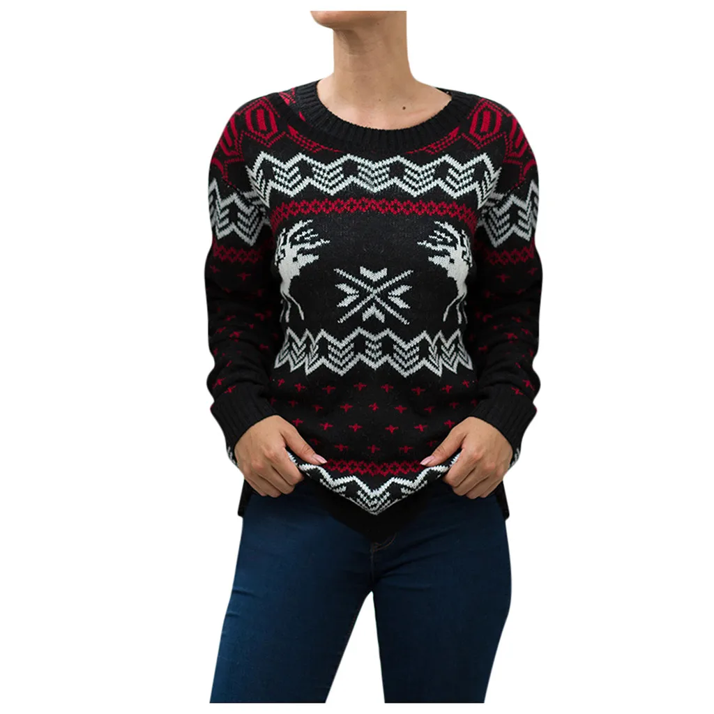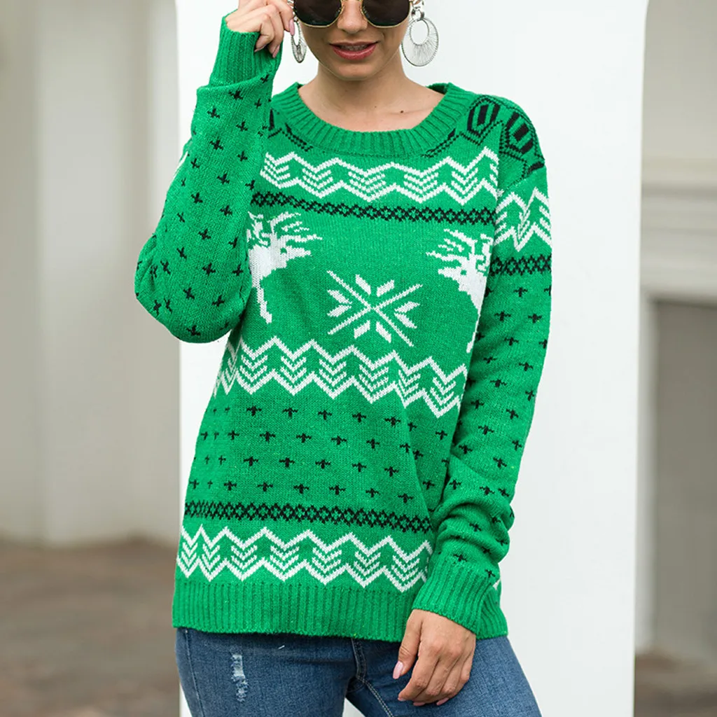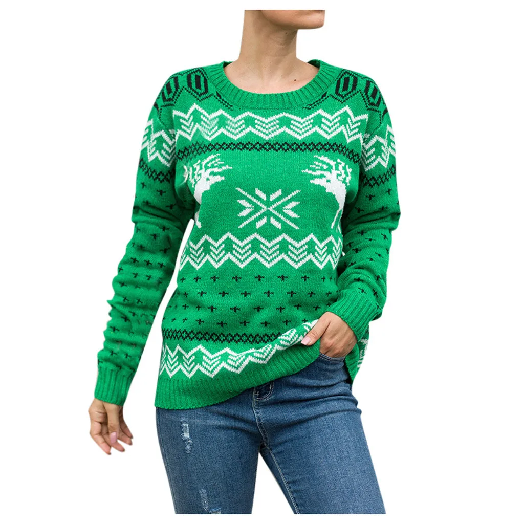 Женский Рождественский свитер с длинным рукавом и круглым вырезом, вязаный свитер с рождественской елкой, топы