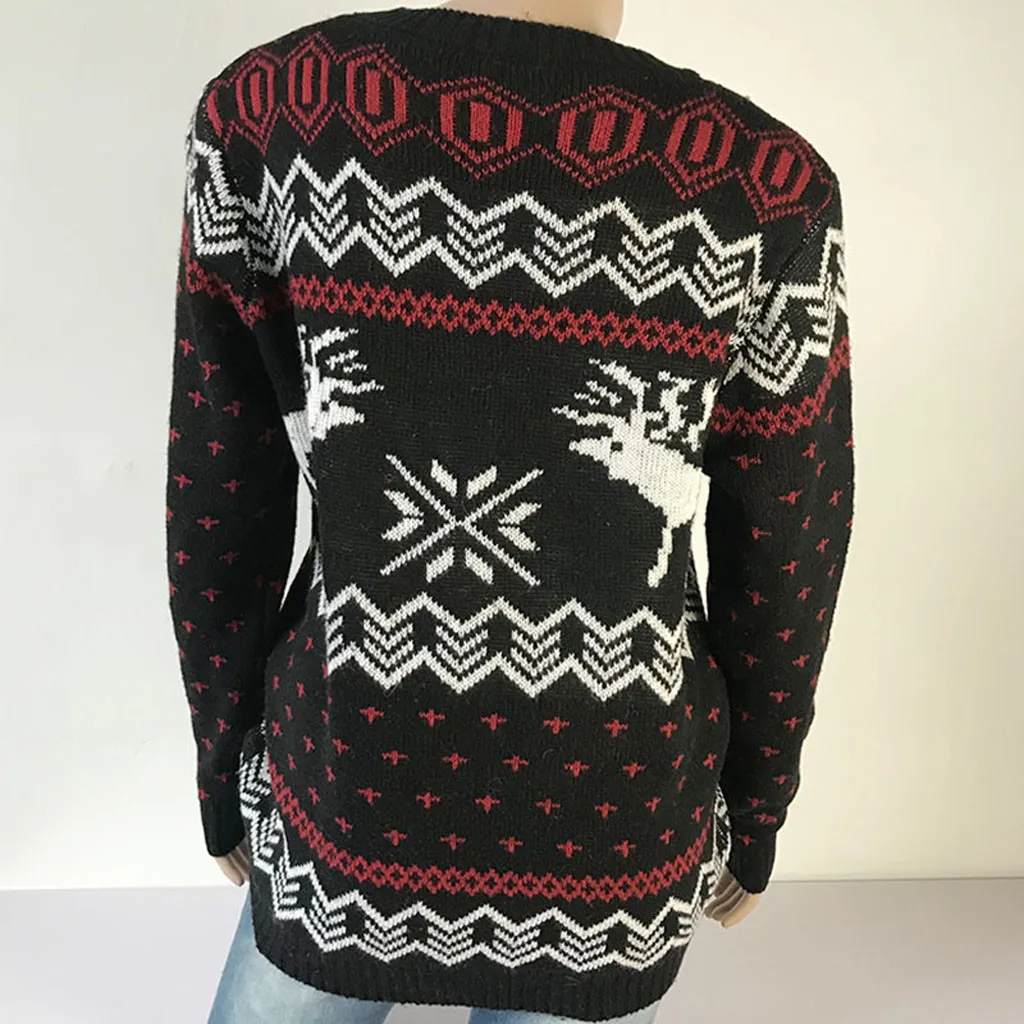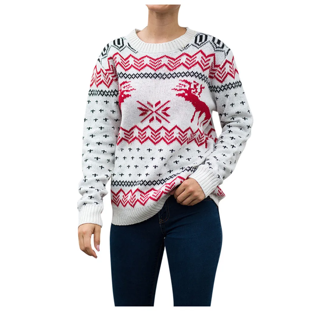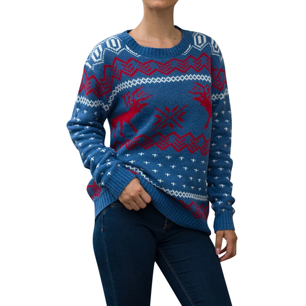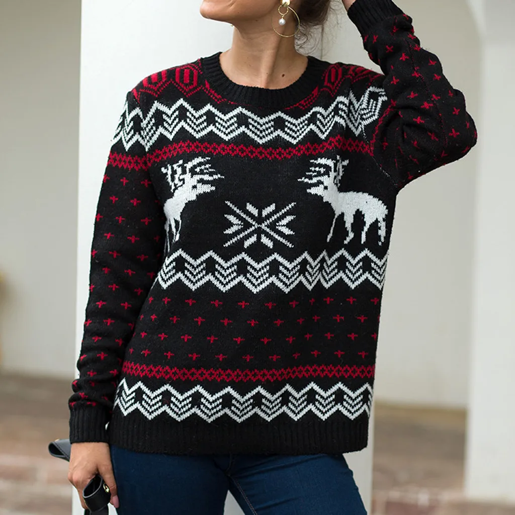 Женский Рождественский свитер с длинным рукавом и круглым вырезом, вязаный свитер с рождественской елкой, топы