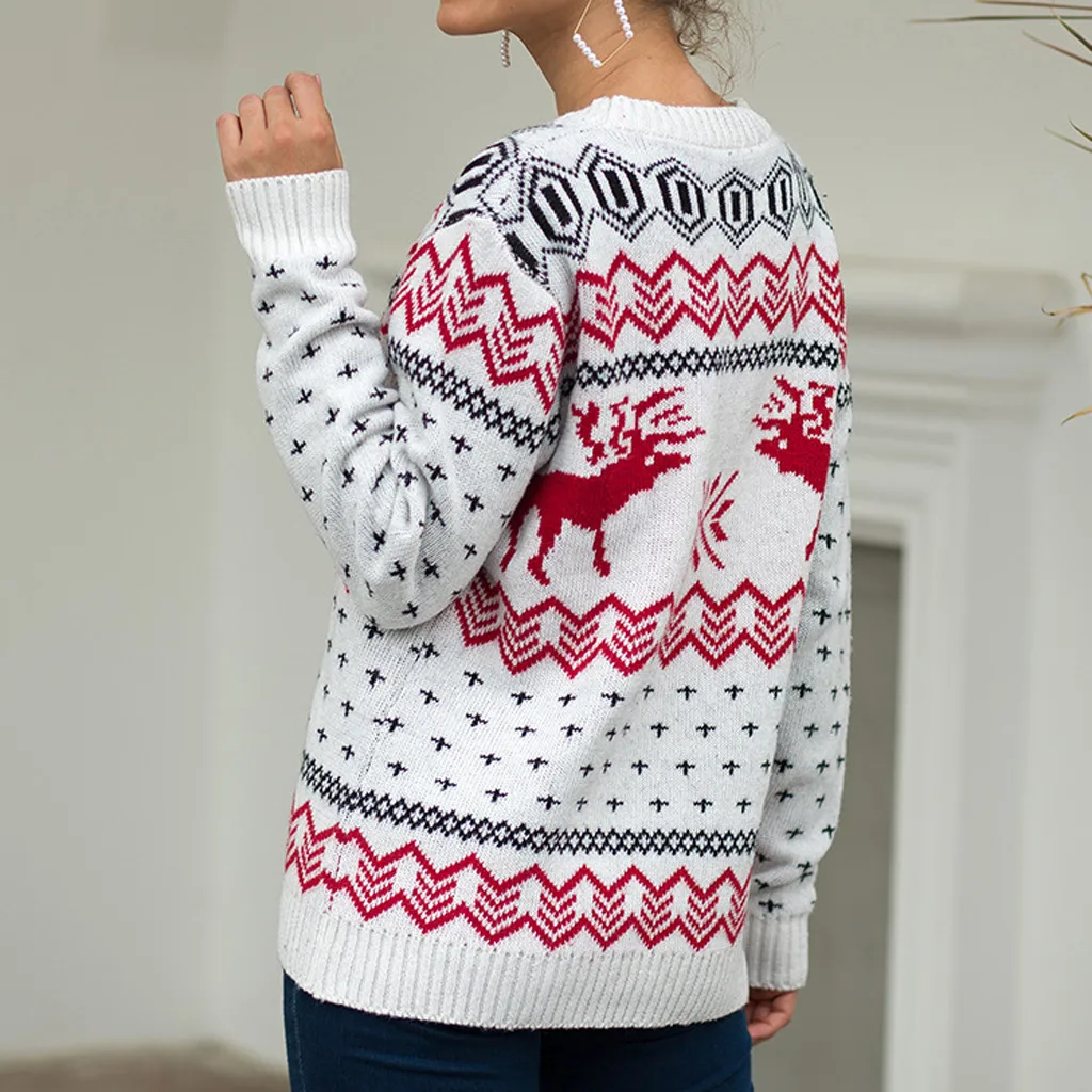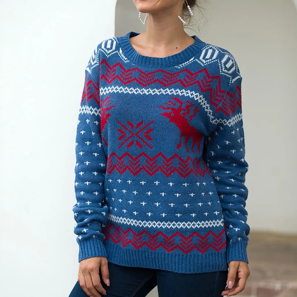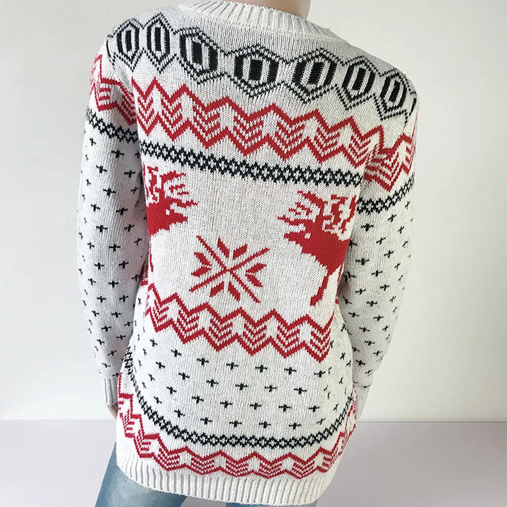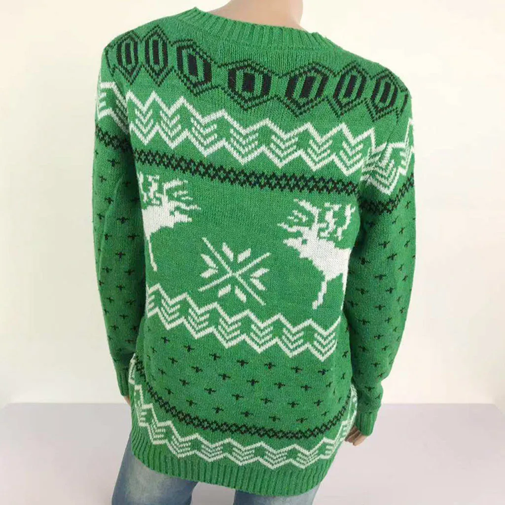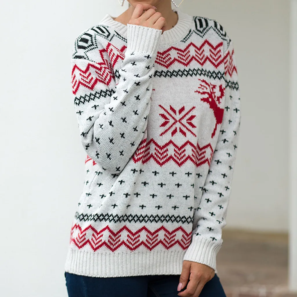 Женский Рождественский свитер с длинным рукавом и круглым вырезом, вязаный свитер с рождественской елкой, топы