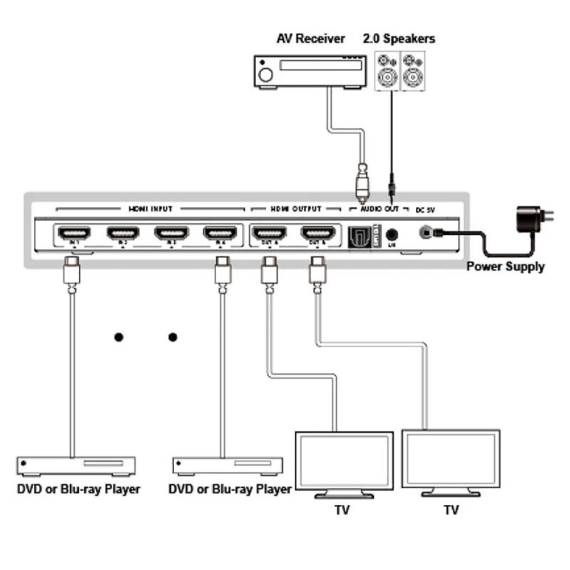 1*4 × 2 HDMI матрица с аудио экстрактом