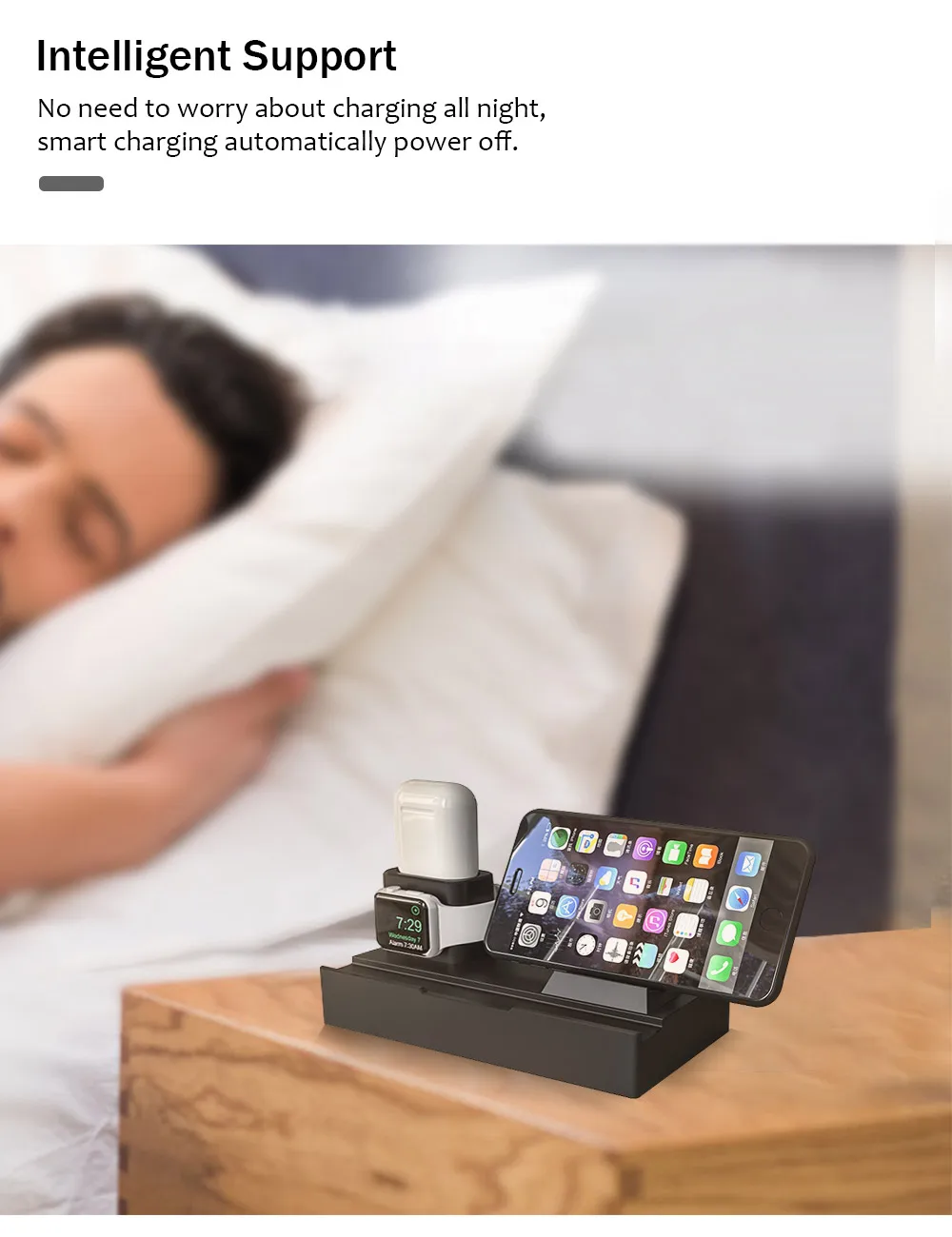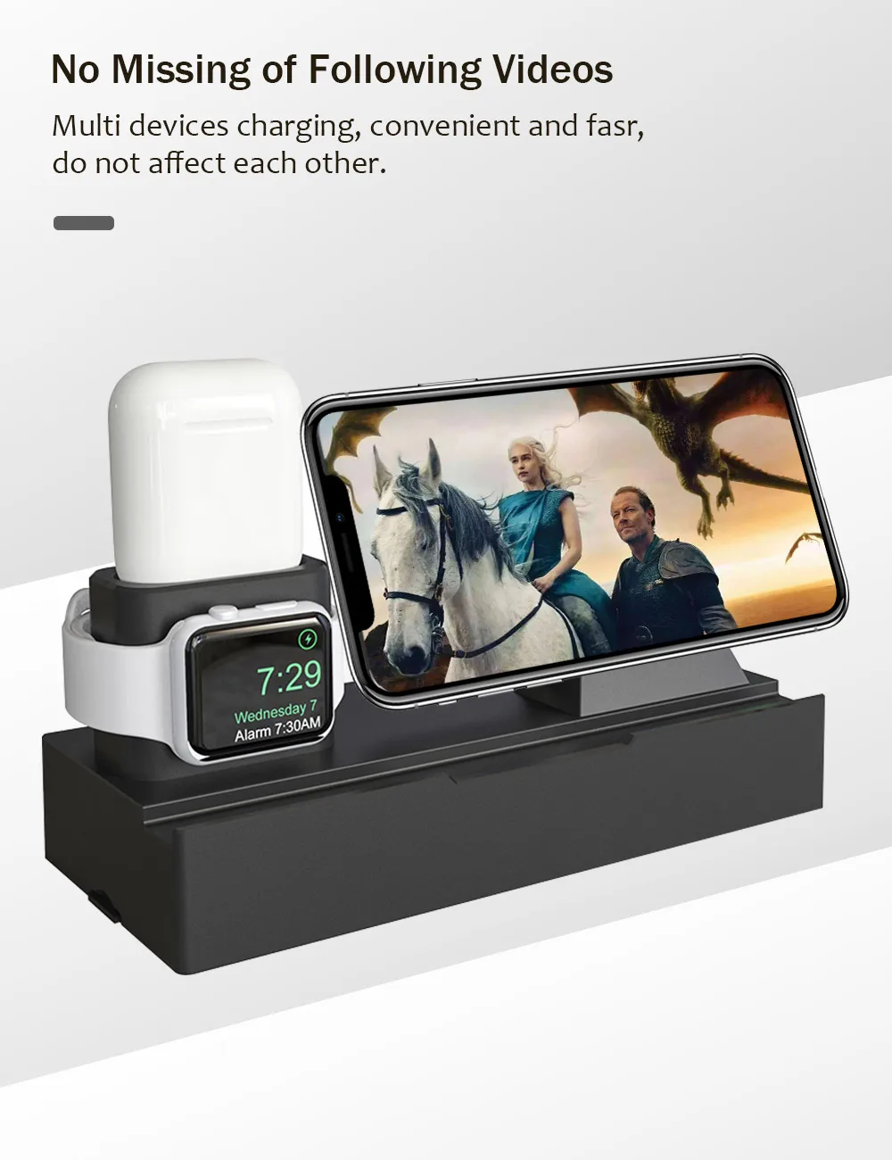 Беспроводной Зарядное устройство подставка для iPhone AirPods Apple Watch, док-станция для зарядки Зарядное устройство для наручных часов Apple Watch Series 4/3/2/1 iPhone X 8 XS