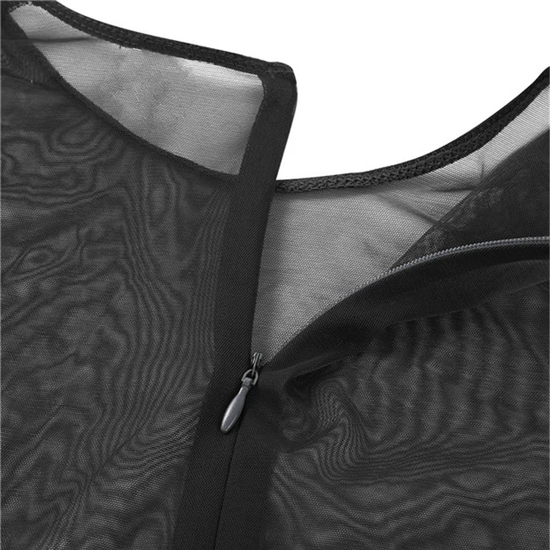 Длинные рукава, спереди Перекрещенные и с лямкой на шее, прозрачный сетчатый топ с лифом со скрытой застежкой-молнией сзади.
