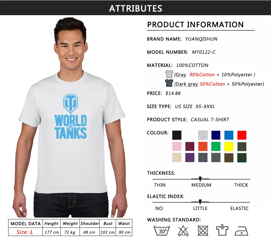 Другое Цвета T-Рубашка ткани 100% хлопок