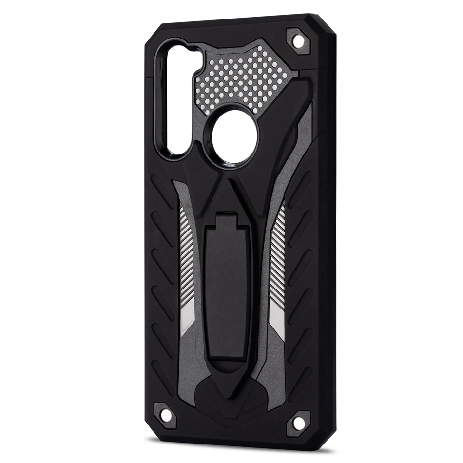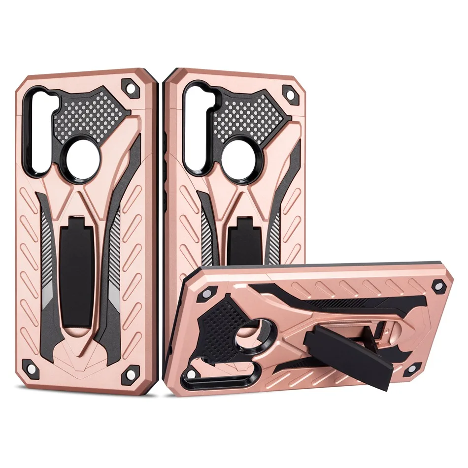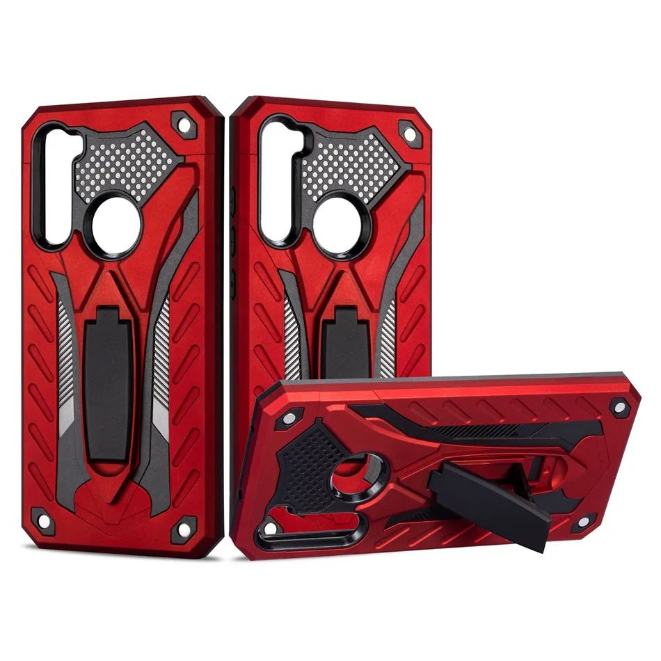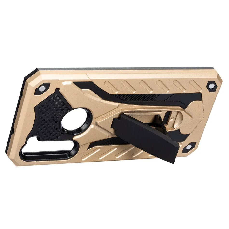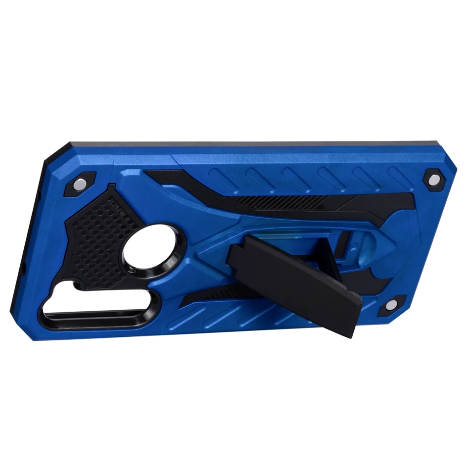 -Description 1. Dual-layered casing featuring a shock-absorbing internal padding, plus side, screen, and corner protection. 2. Flexible TPU inner Case + Hard Polycarbonate Back Plate; a patterned rubberized interior for shock absorbance and an exterior polycarbonate removable spine for tough drops and bumps. 3. The protective casing does not interfere with call strength or volume. 4. Stand holder provides you with multiple viewing angles for watching video and pictures.