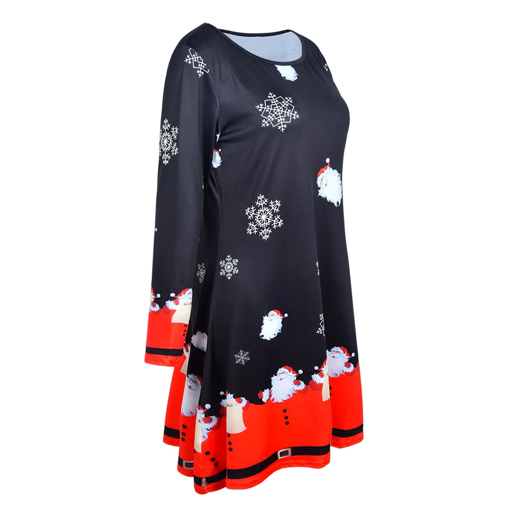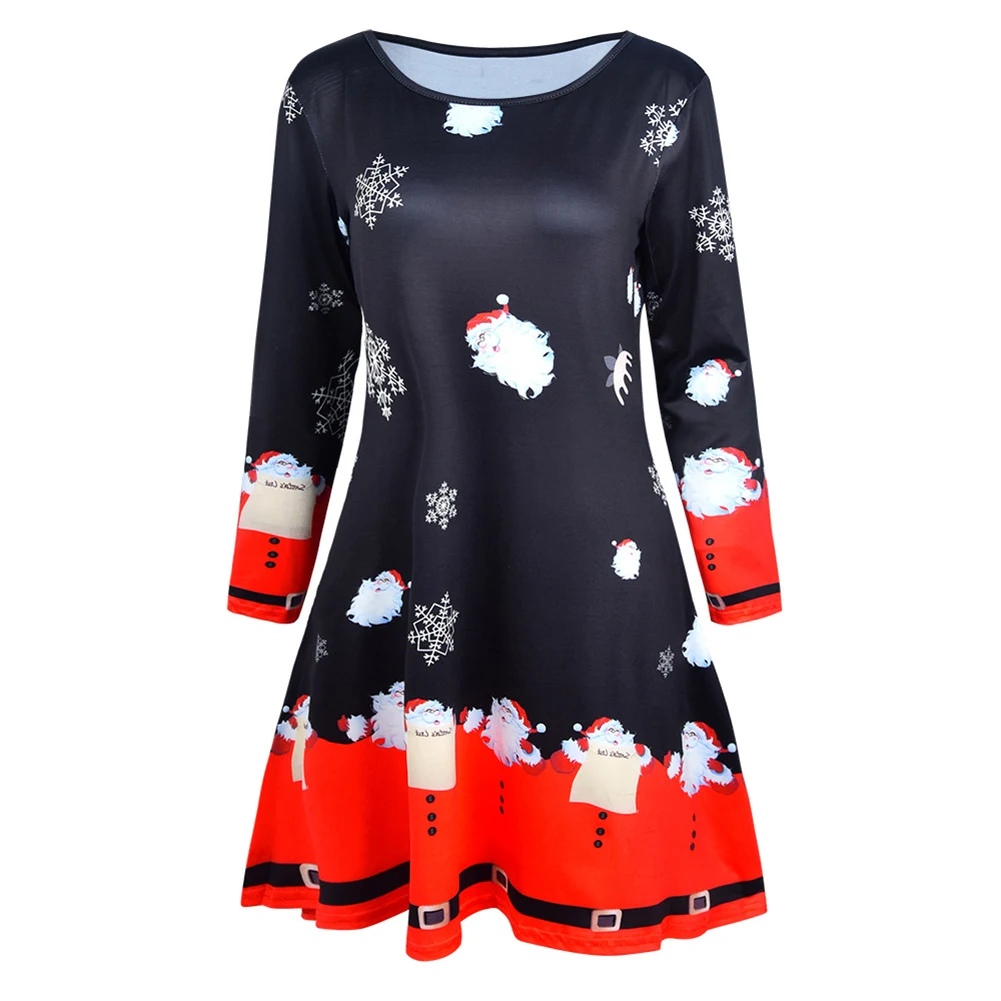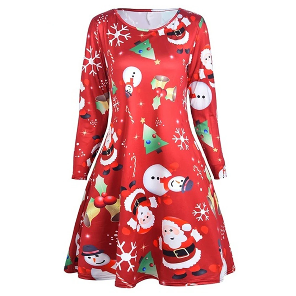 Рождество Женщины Санта Снеговик печати с длинным рукавом О-образным вырезом случайные линии миди платье