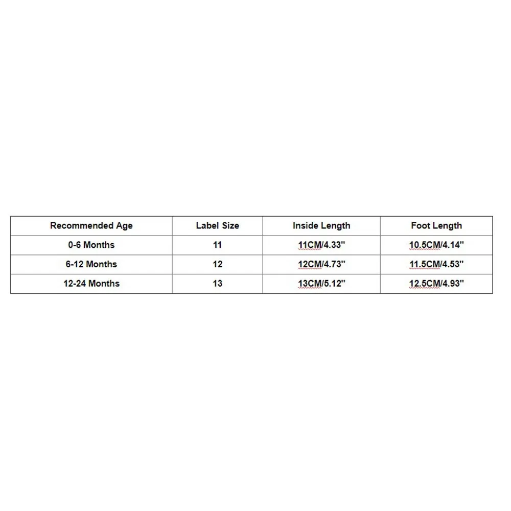 Обратите внимание, что небольшая разница в цвете может быть допустима из-за освещения и экрана.Рекомендуемый возраст Размер этикетки Внутренняя длина Длина стопы 0-6 месяцев 11 11 см/4,33 дюйма 10,5 см/4,14'' 6-12 месяцев 12 12 см/4,73'' 11,5 см/4,53'' 12-24 месяца 13 13 см/5,12 дюйма 12,5 см/4,93'' Рекомендуемый Возраст: 0-6 месяцев Размер этикетки: 11 Внутренняя длина: 11 см/4,33 дюйма Длина стопы: 10,5 см/4,14 дюйма Рекомендуемый возраст: 6-12 месяцев Размер этикетки: 12 Внутренняя длина: 12 см/4,73'' Длина стопы: 11,5 см/4,53 дюйма Рекомендуемый возраст: 12-24 месяца Размер этикетки: 13 Внутренняя длина: 13 см/5,12 дюйма Длина стопы: 12,5 см/4,93 дюйма