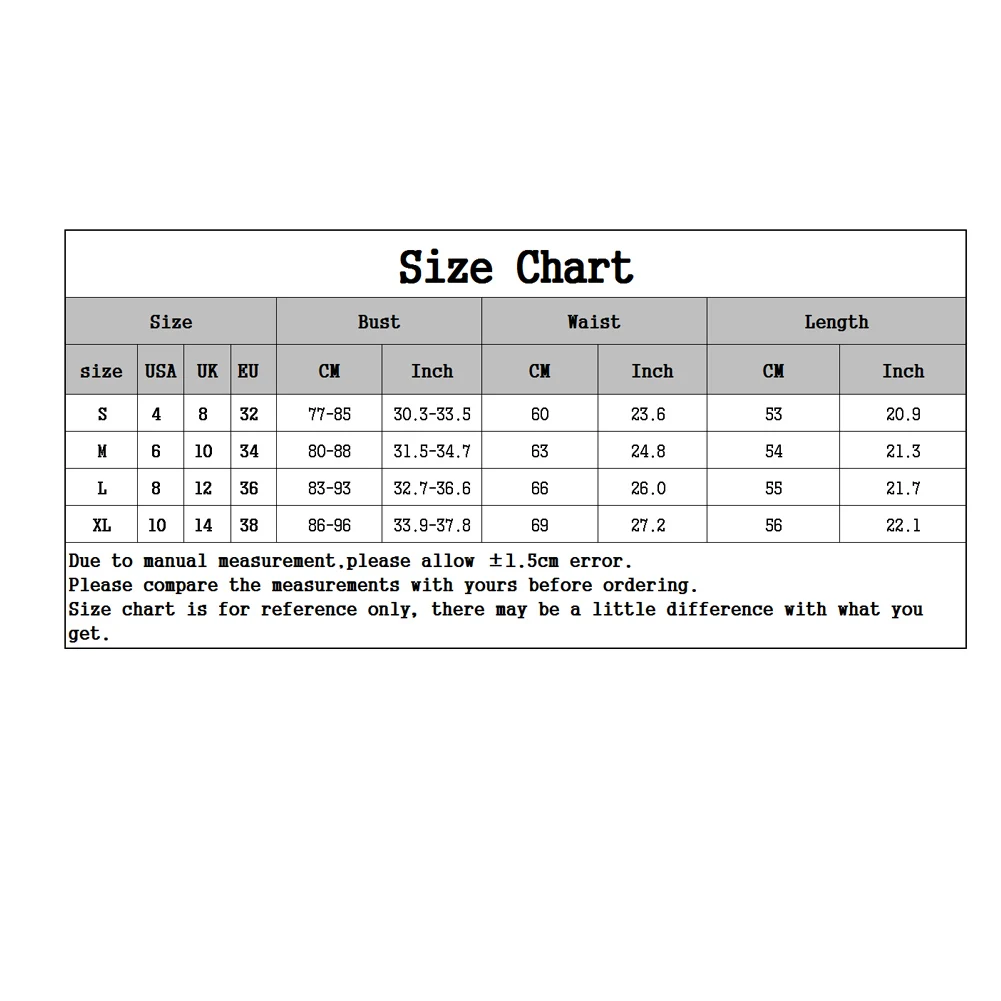 [Наш Размер S] Обхват груди: 77 см-85 см/30,3 "-33,5", обхват талии: 60 см/23,6 ", Длина: 53 см/20,9" (прибл.)