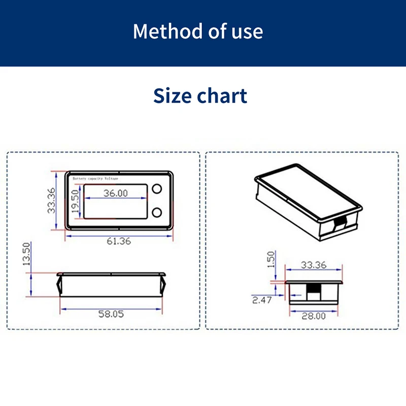 Вольтметр емкости батареи широко подходит для свинцово-кислотных батарей, для литиевых батарей, для фосфатов лития железа и так далее.