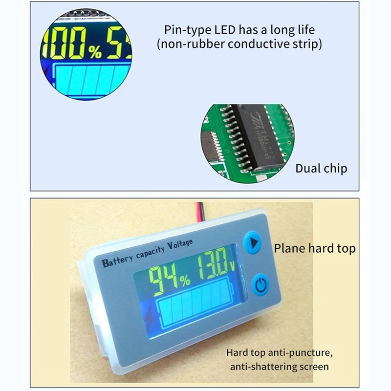 Вольтметр емкости аккумулятора изготовлен из высококачественного пластика, который трудно проколоть и сломать.