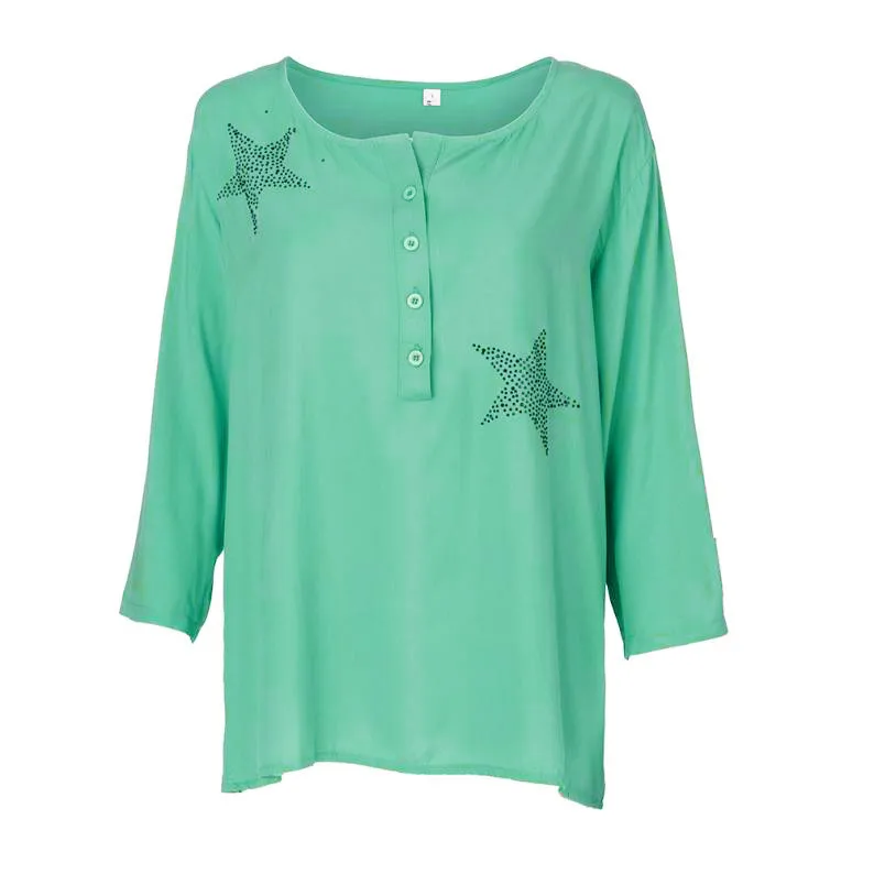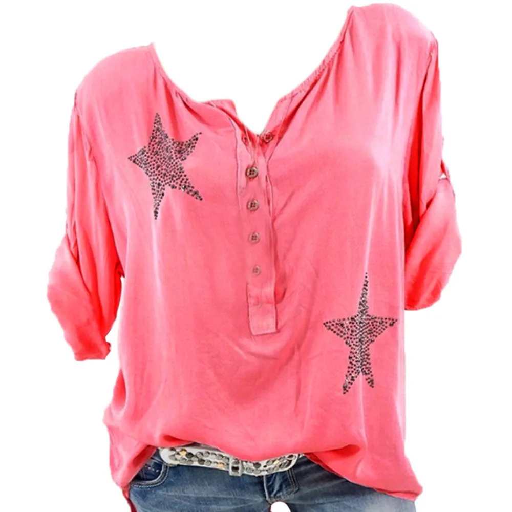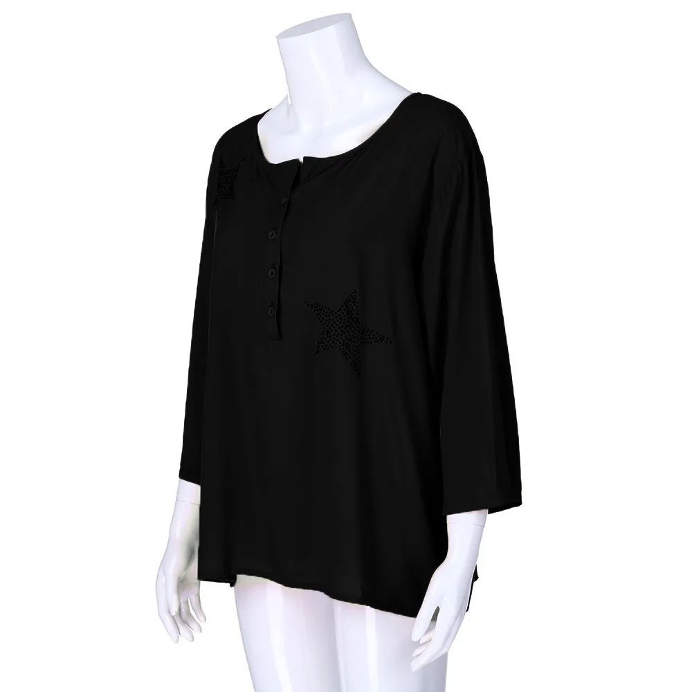Женская блузка с рукавом три четверти и пятиконечной звездой размера плюс