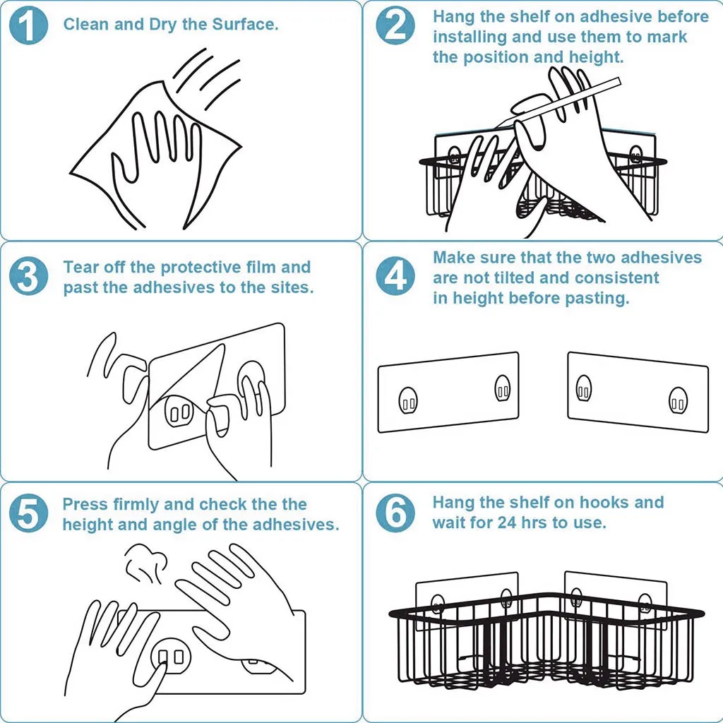 Липкость клея сильная, не беспокойтесь о перемещении корзины для ванны Легко. Не требует сверления, простая установка. Руководство по удалению: Используйте волосы Сушилка для нагрева наклейки, легко оторвать ее при достаточном нагреве.