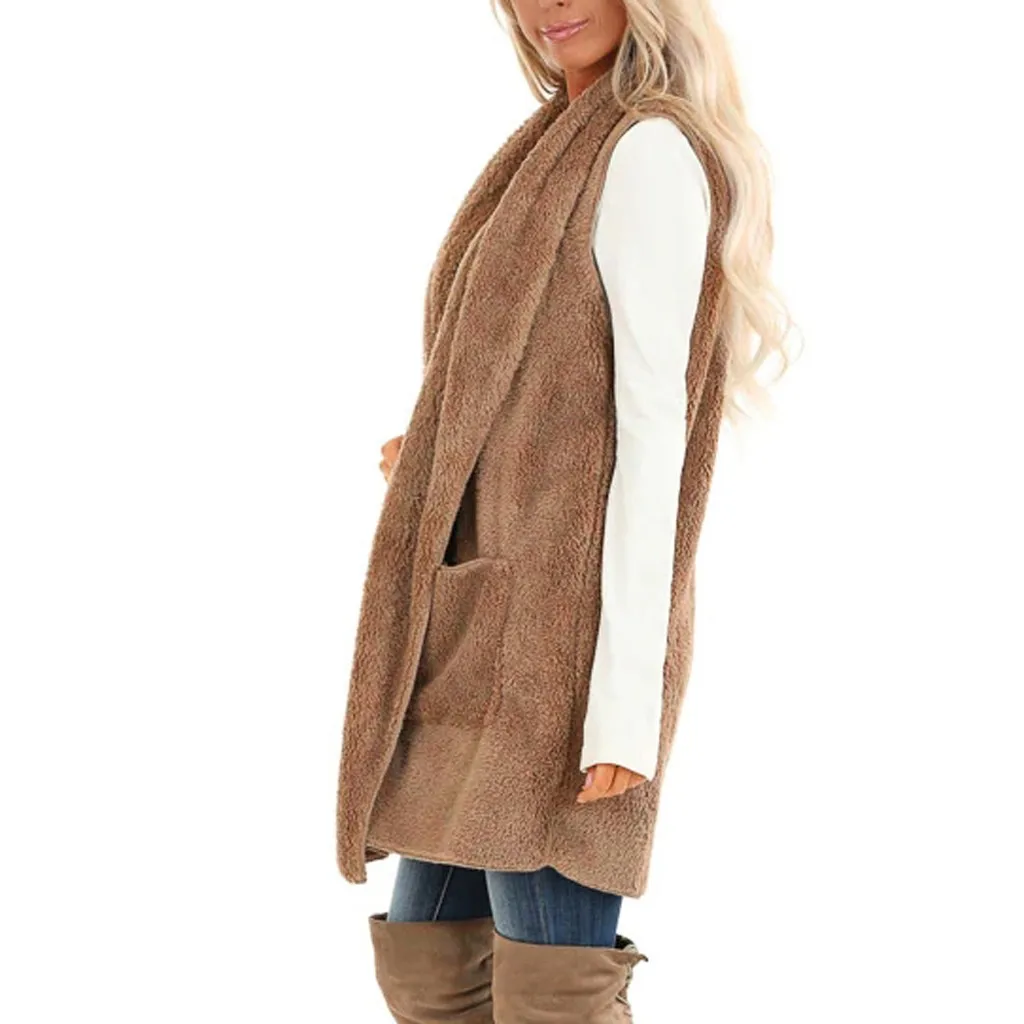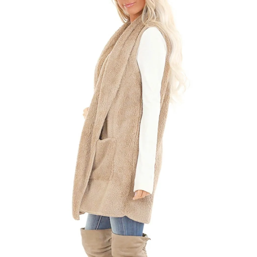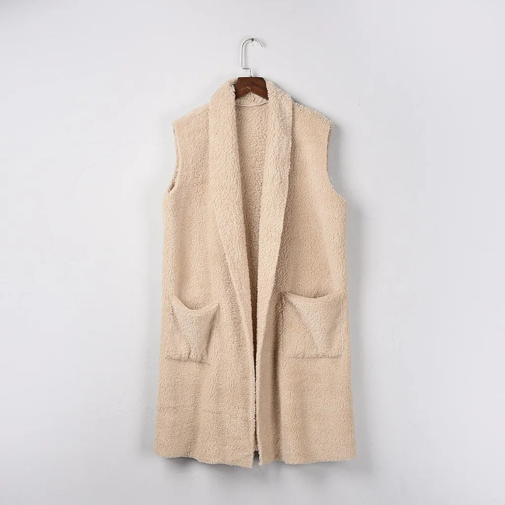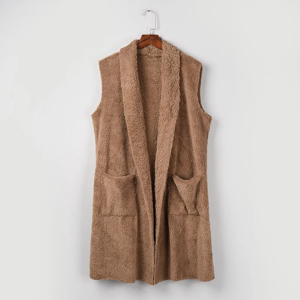 Женский кардиган из искусственного меха без рукавов, винтажный мохнатый жилет, куртка, длинное пальто