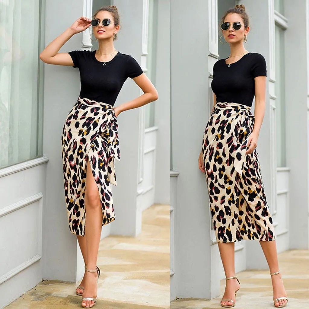 Сексуальная Женская юбка, модная леопардовая юбка с высокой талией, длинная юбка трапециевидной формы, юбки faldas jupe femme shein saia harajuku falda, 2019