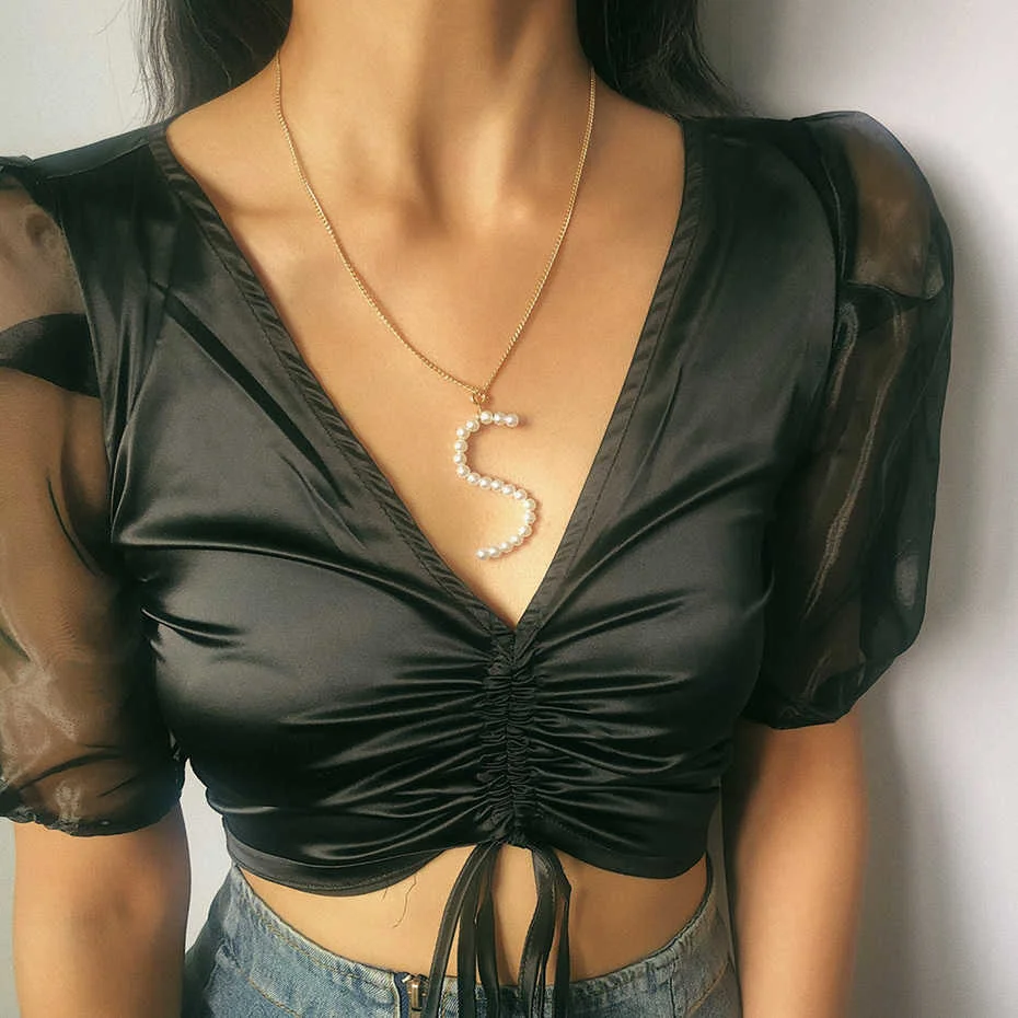 Простое Ожерелье IngeSight.Z с подвеской в виде буквы А из искусственного жемчуга