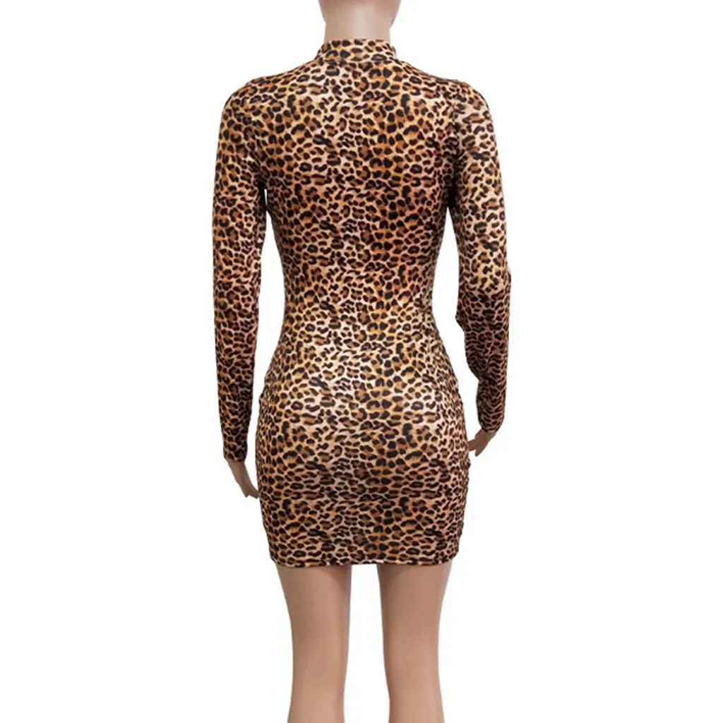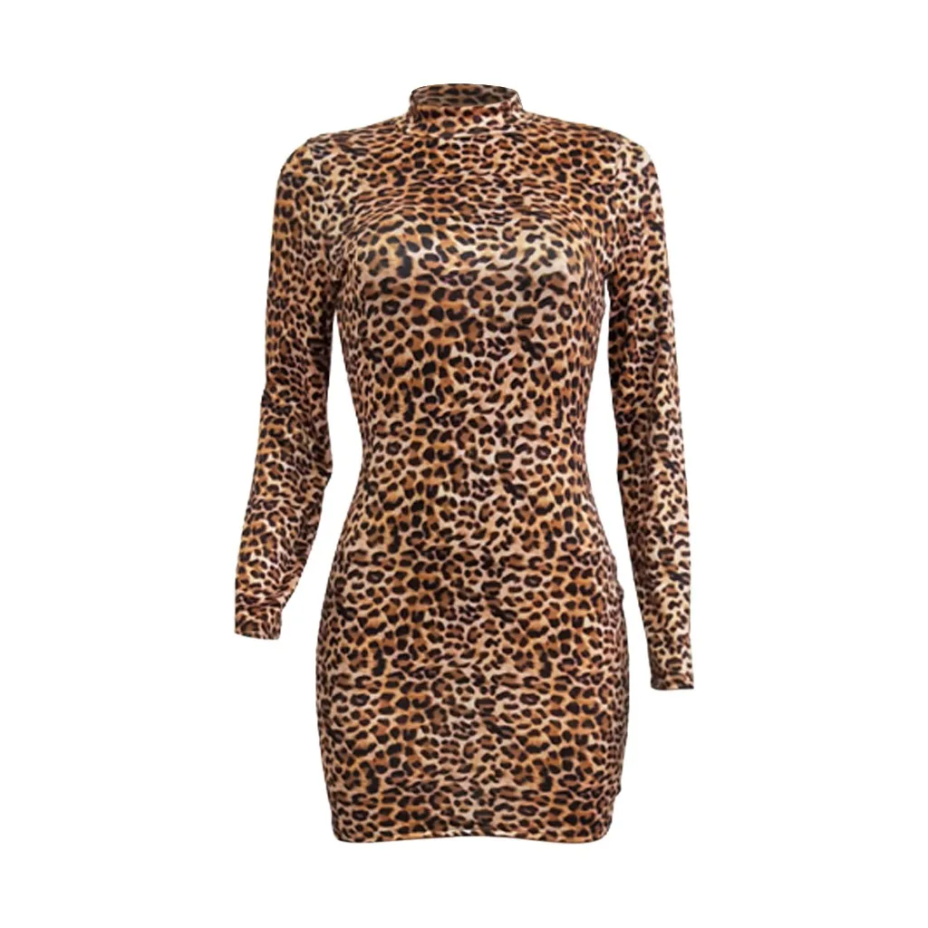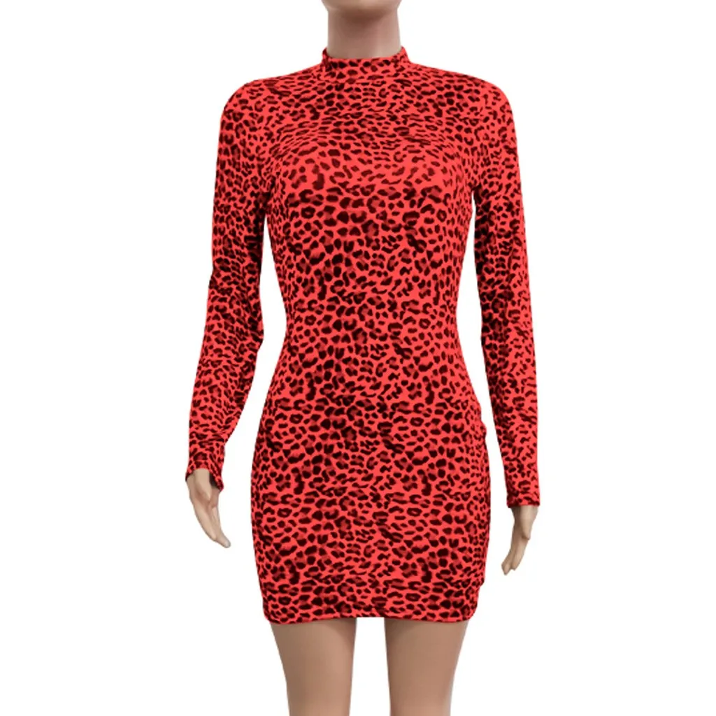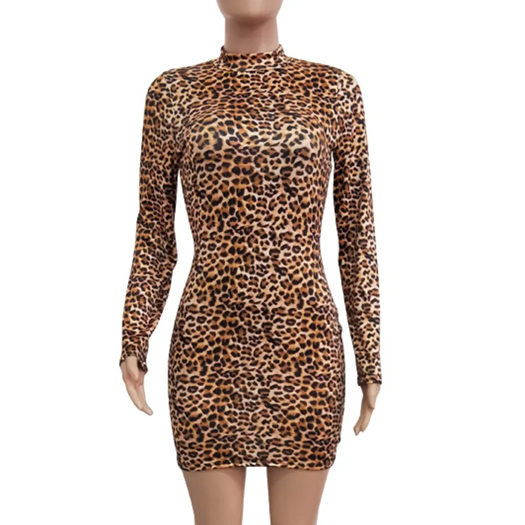 Модная Женская водолазка с длинным рукавом с леопардовым принтом, тонкое Повседневное платье для ночного клуба