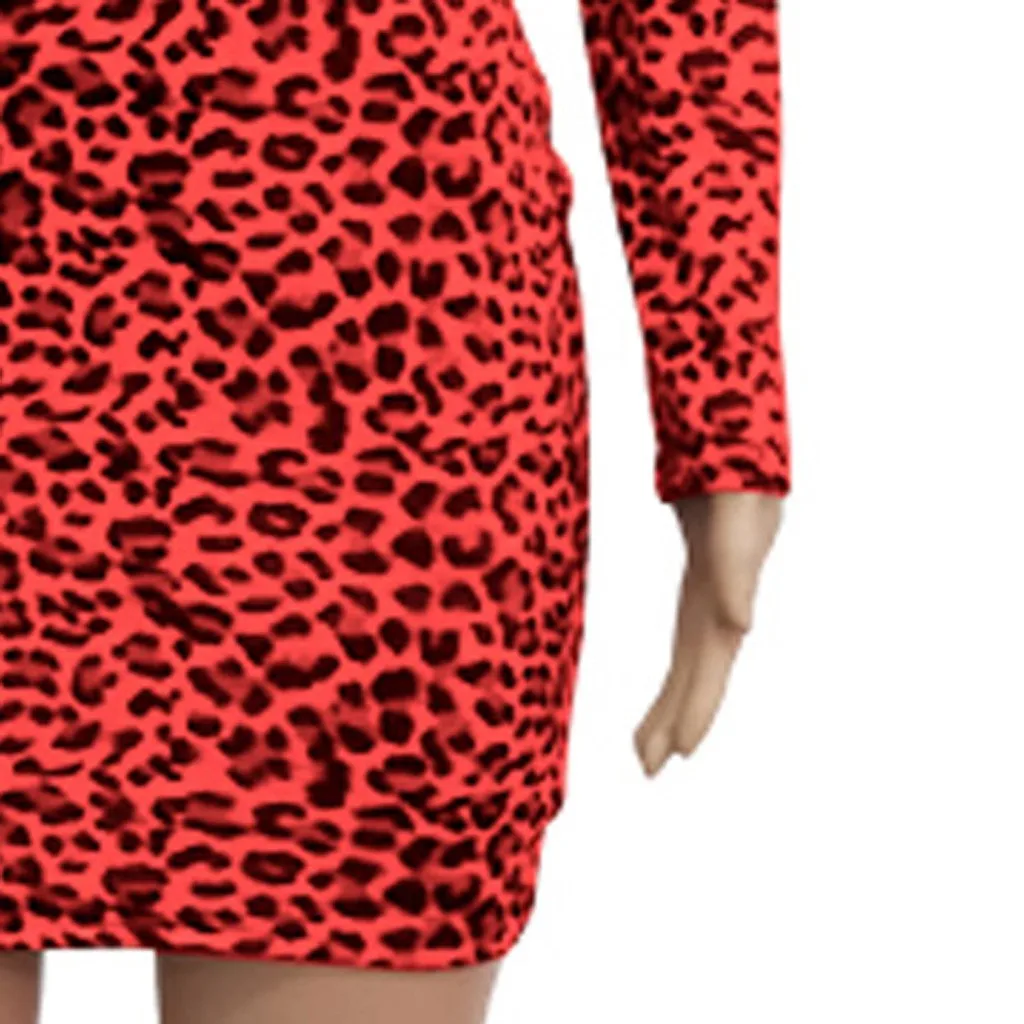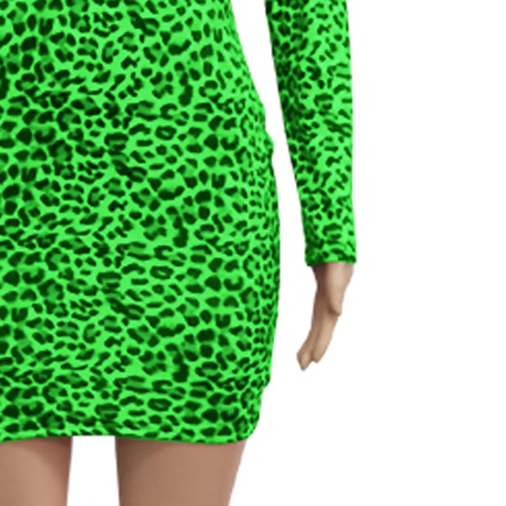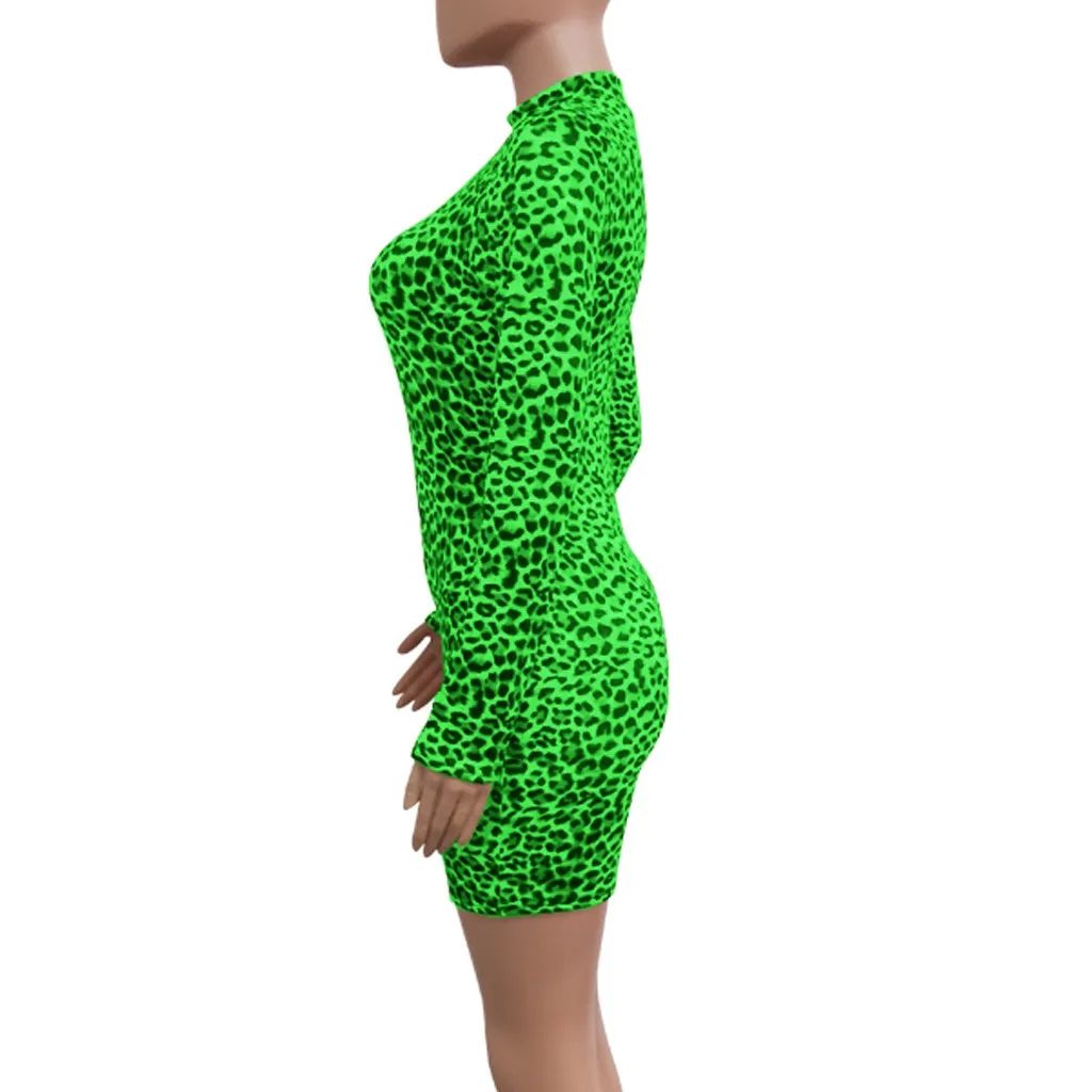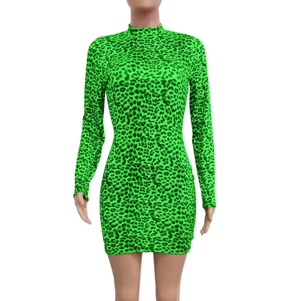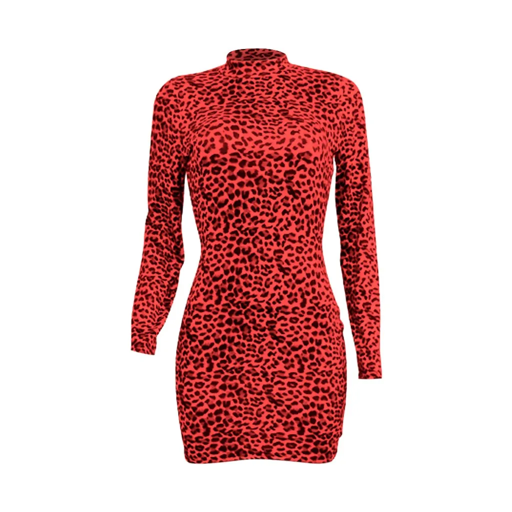 Модная Женская водолазка с длинным рукавом с леопардовым принтом, тонкое Повседневное платье для ночного клуба