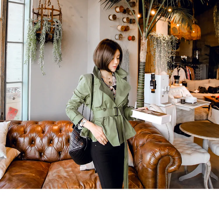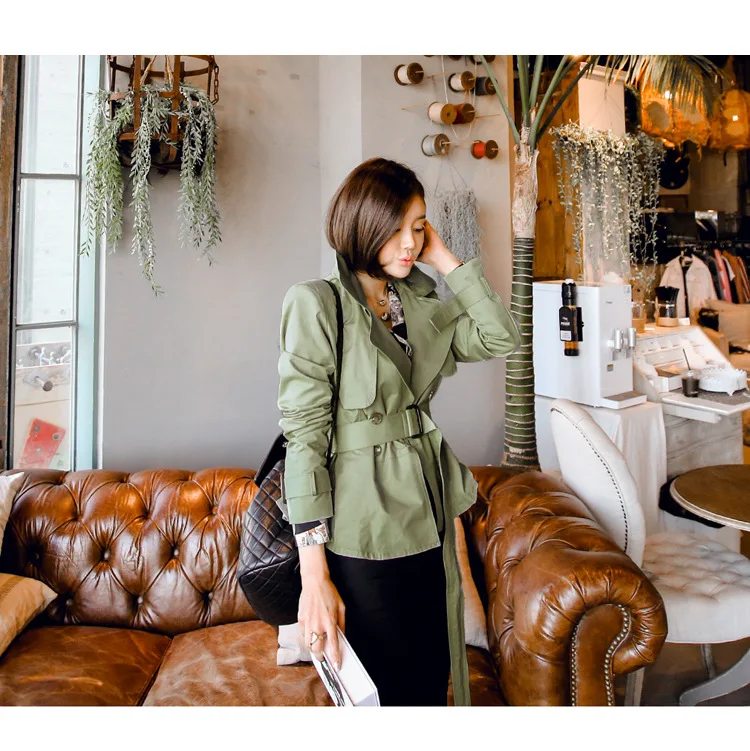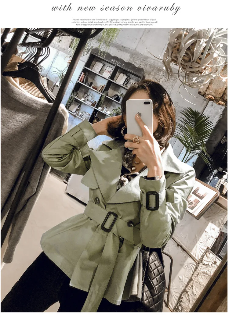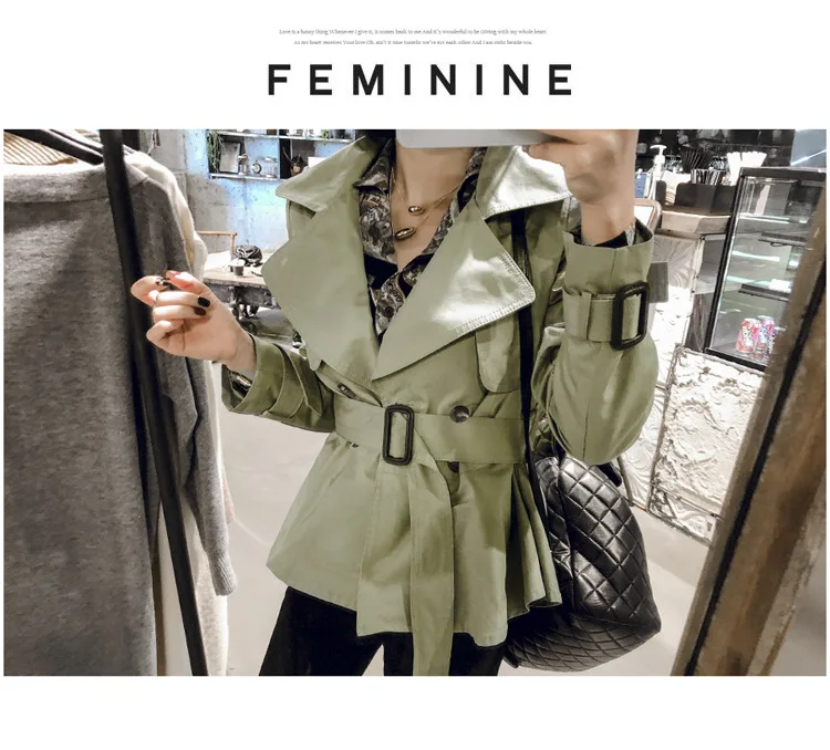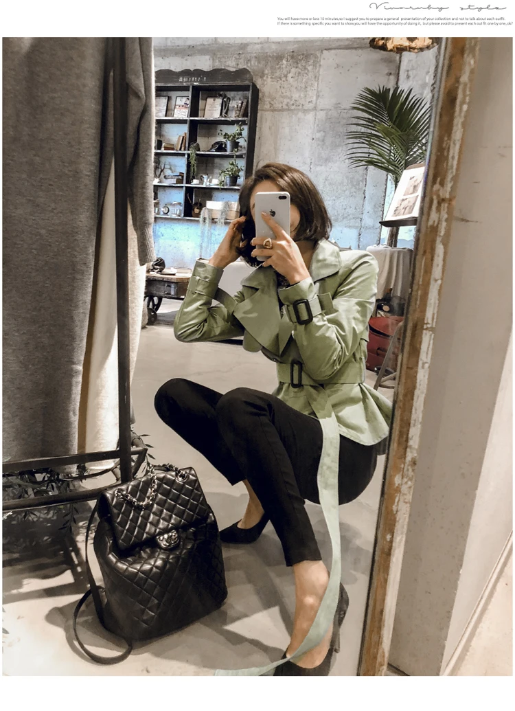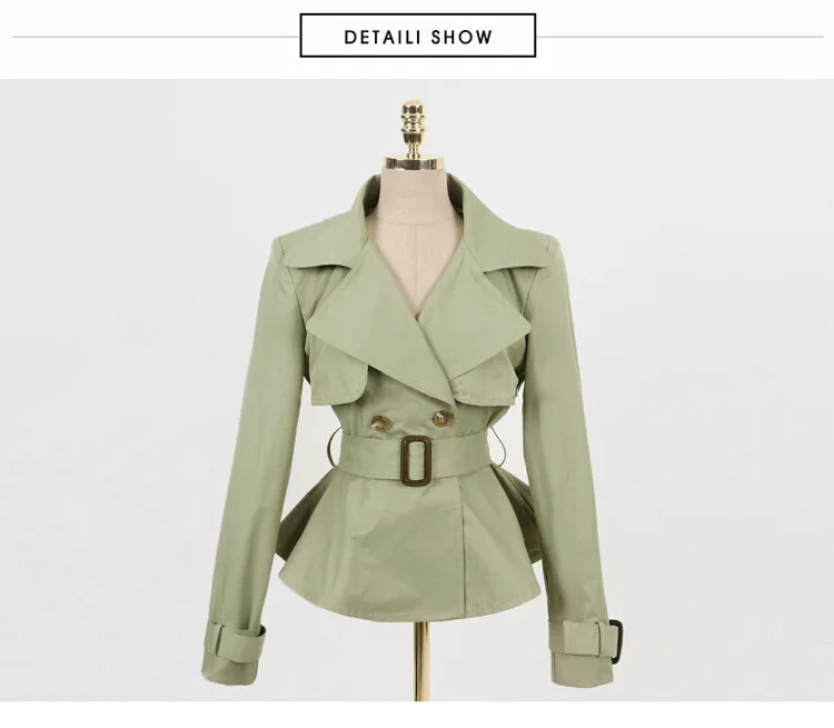 Подиумный дизайнерский Женский Короткий плащ с отложным воротником 2020 Весна OL двубортное пальто с длинным рукавом и поясом AQ352