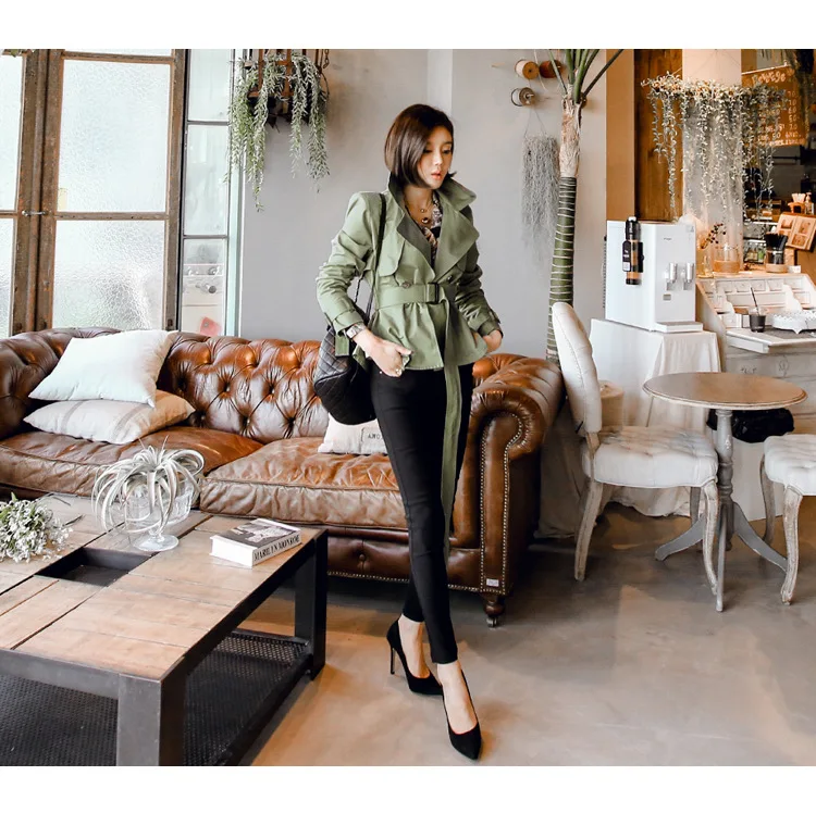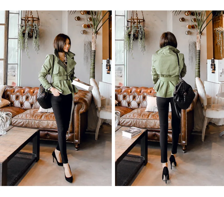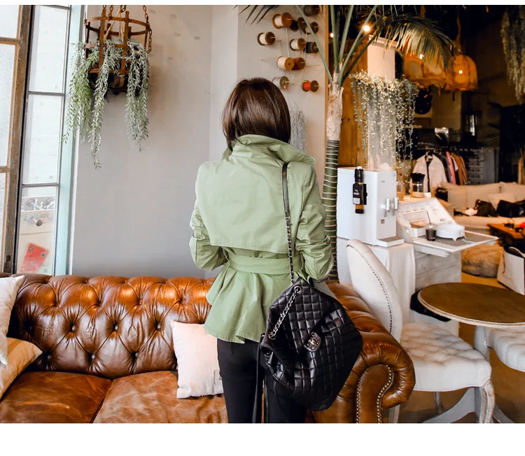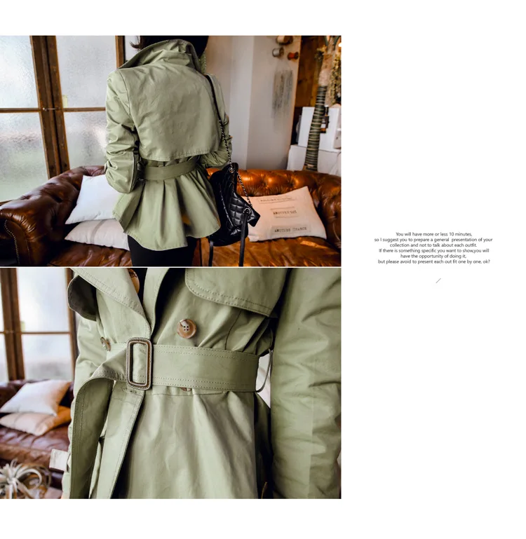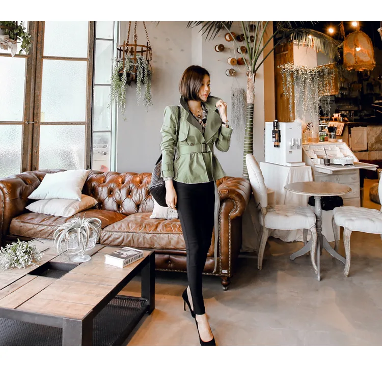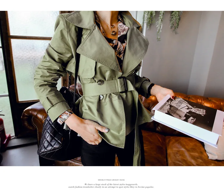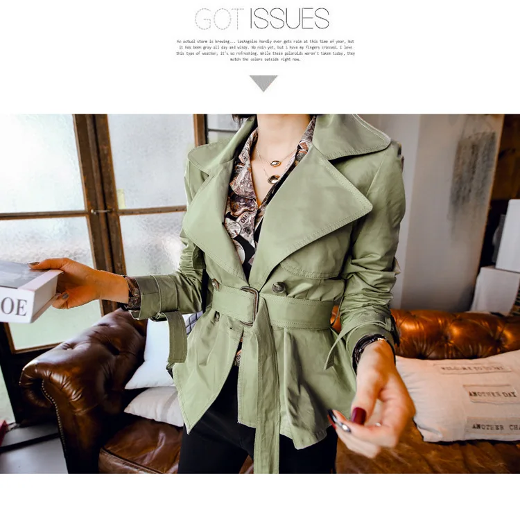 Подиумный дизайнерский Женский Короткий плащ с отложным воротником 2020 Весна OL двубортное пальто с длинным рукавом и поясом AQ352