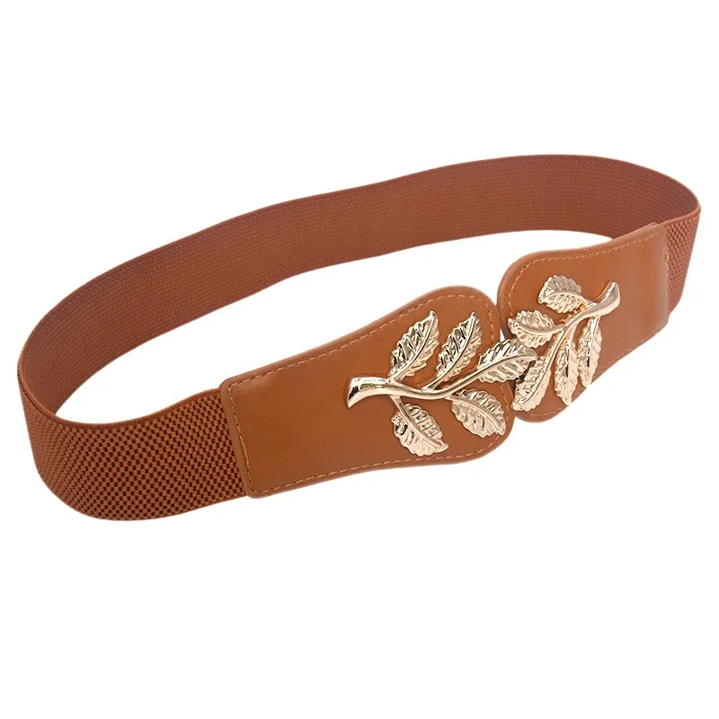Модный женский кожаный пояс с листьями, широкий эластичный пояс
