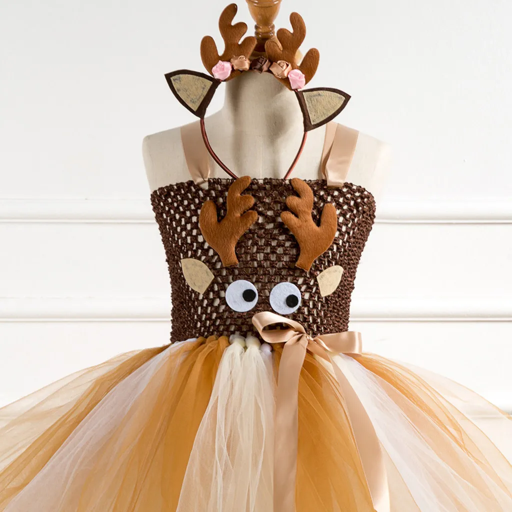 Платье-пачка с оленем платья для маленьких девочек, костюм на День Благодарения для детей и повязка на голову, платье для костюмированной вечеринки, Рождество, день рождения, вечерние платья