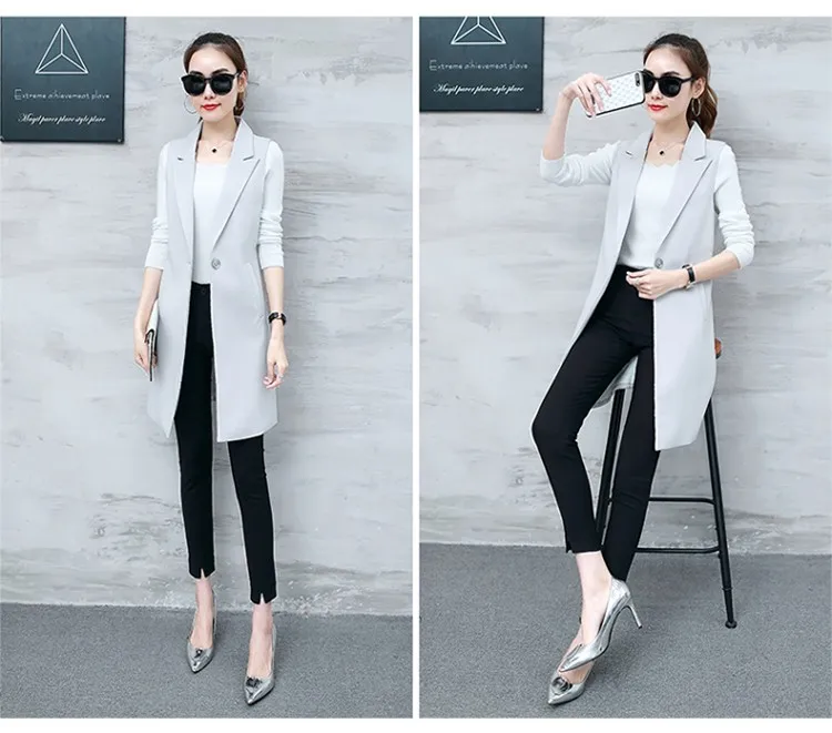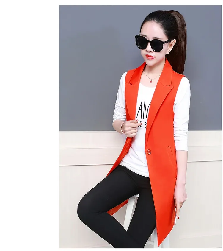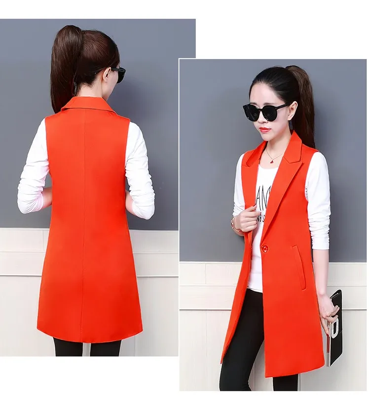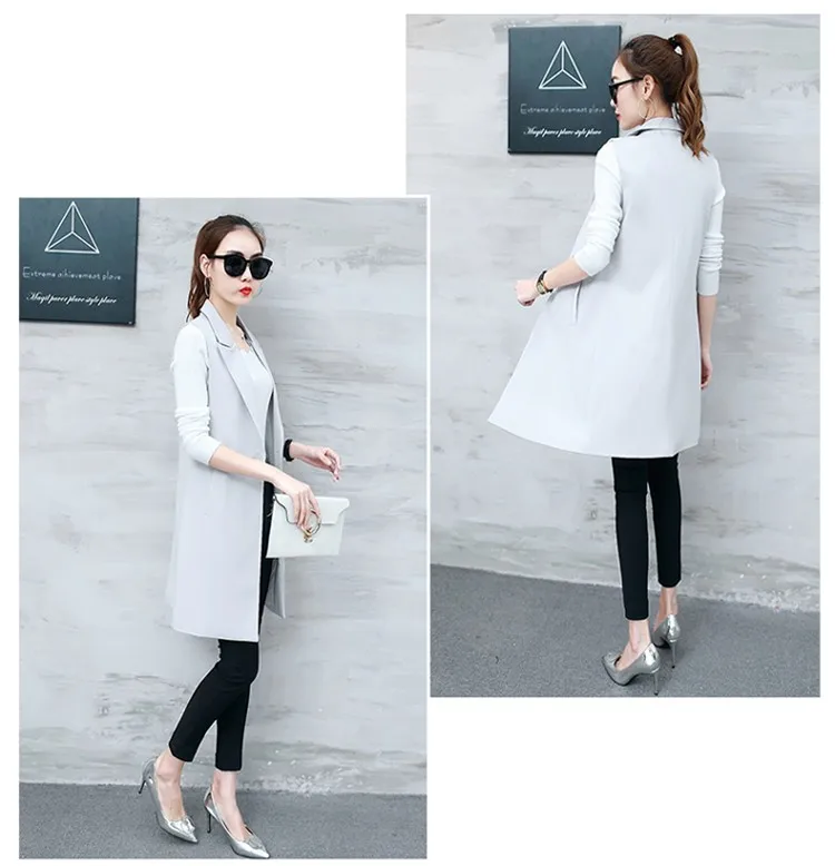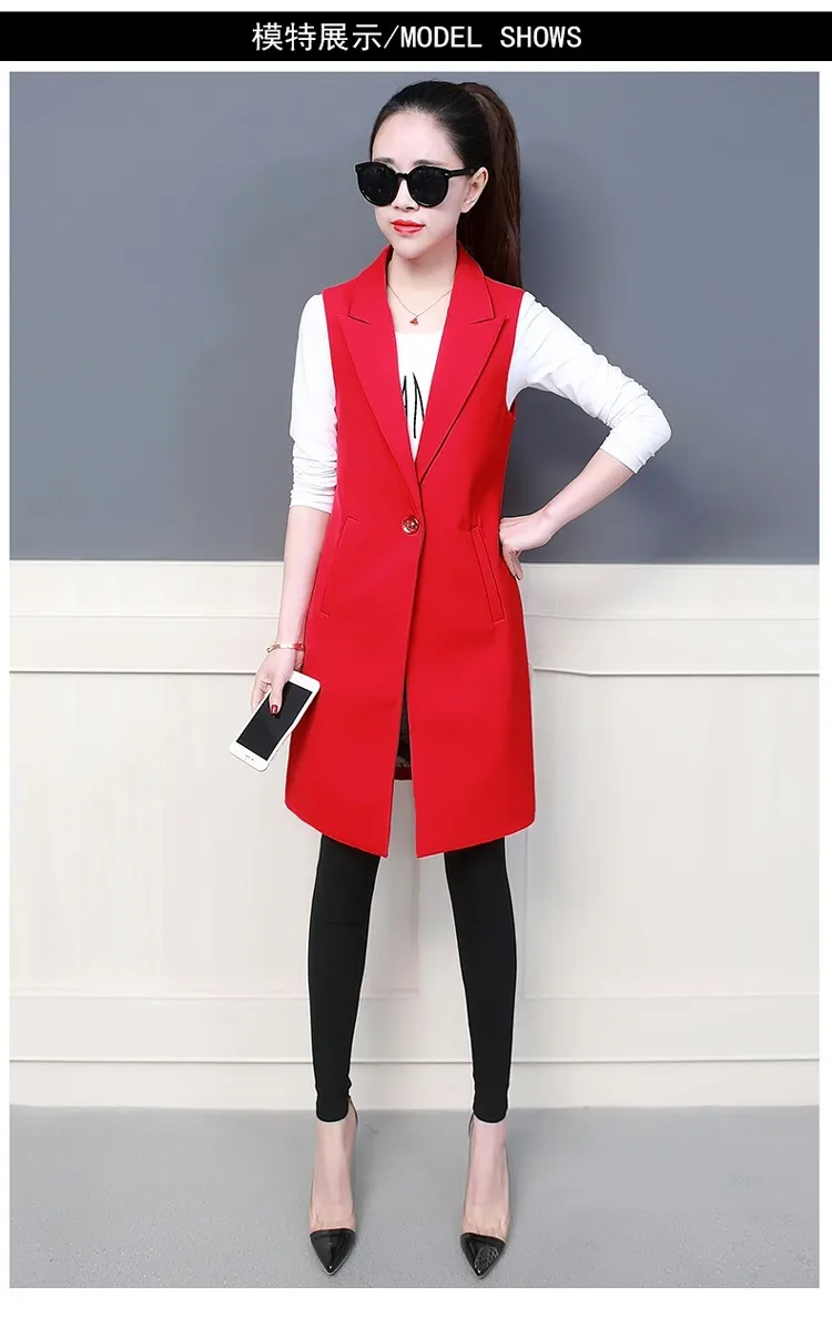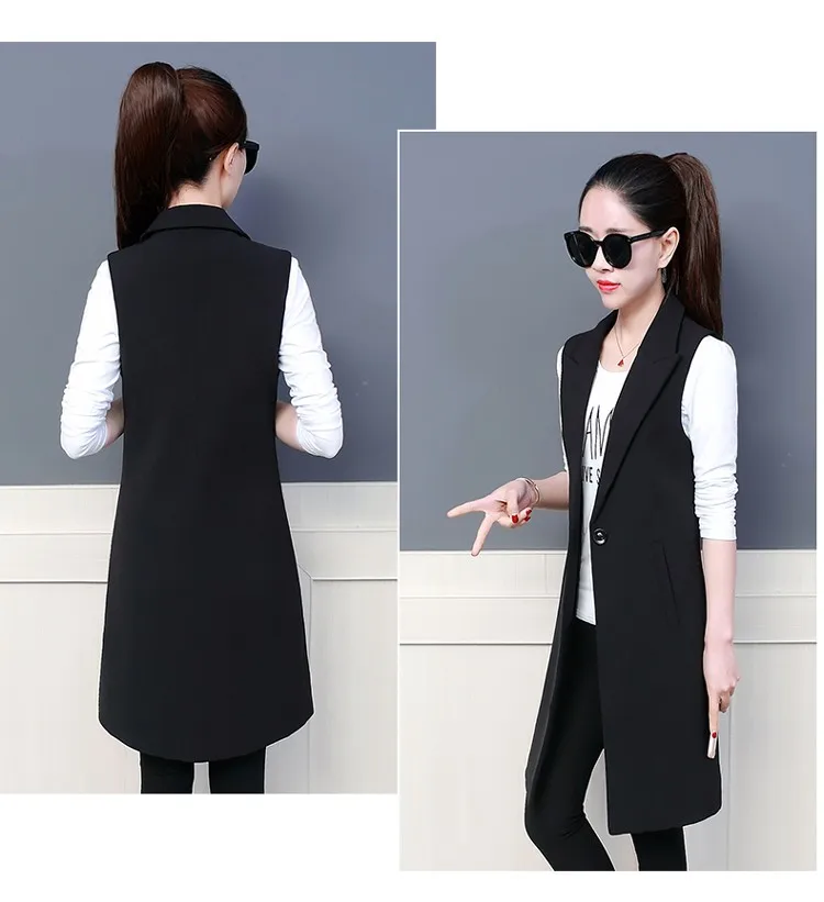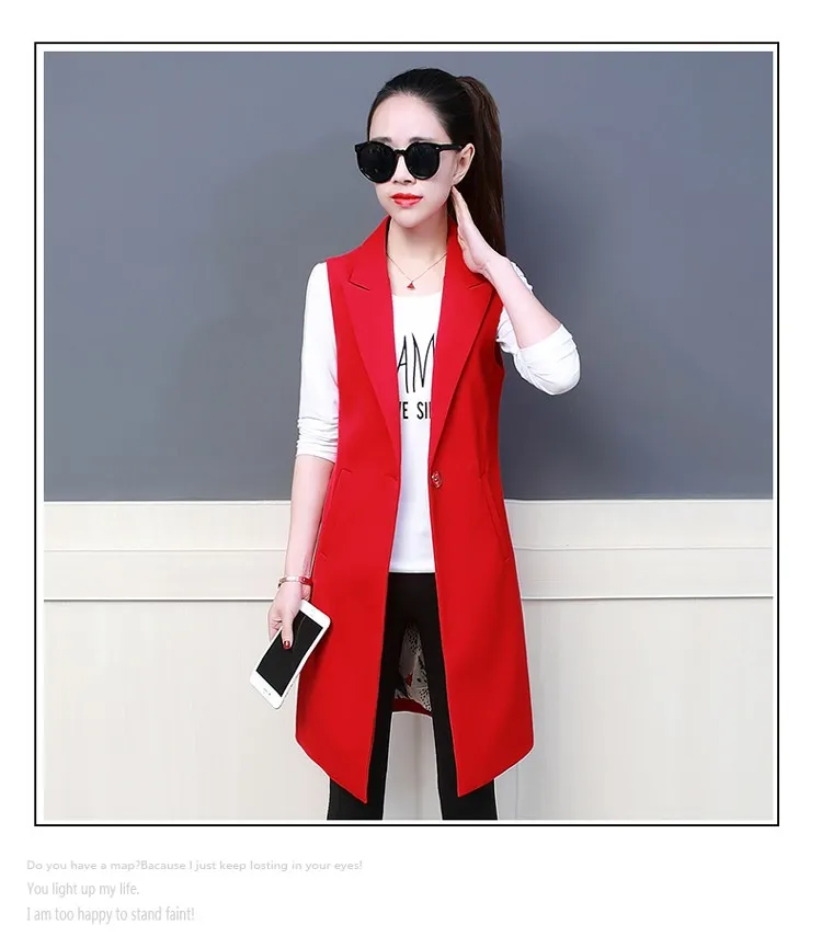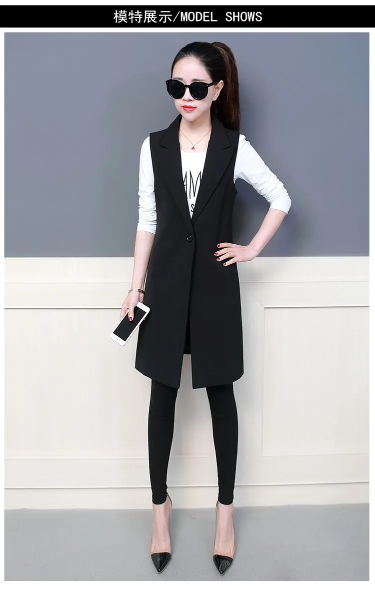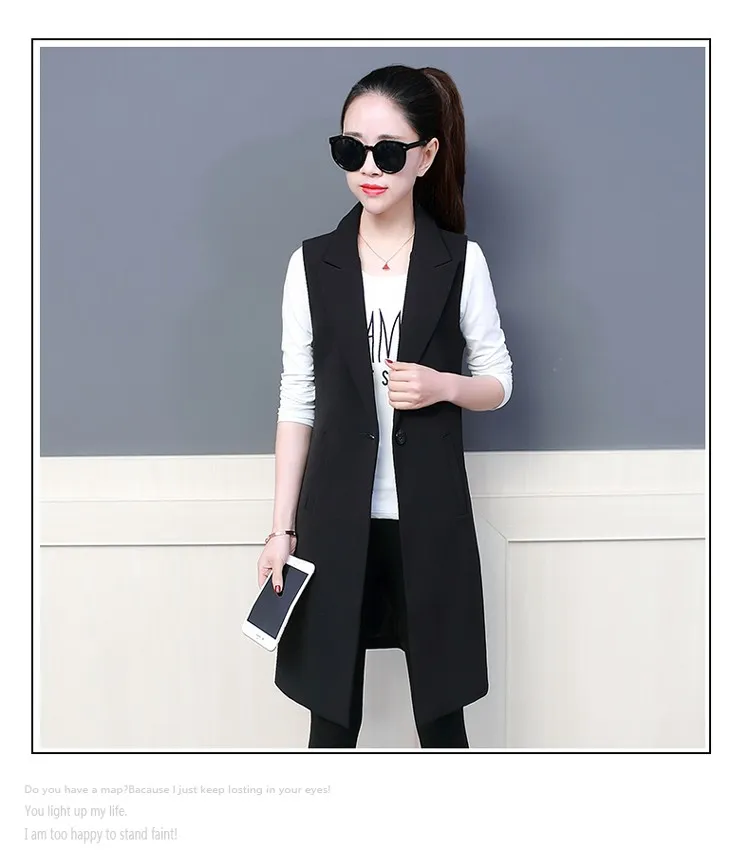 Плюс размер XXXL элегантный Блейзер жилет женский без рукавов Длинный жилет женский Chaleco Mujer костюм жилет пальто женский жилет AQ725