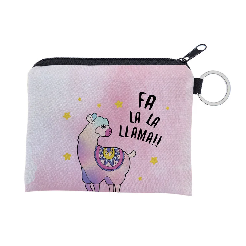WULI SEVEN Pink Alpaca Printing Coin Purse Small Zipper Waterproof Purse Card Key Pouch Mini Square Wallet For Children Gift