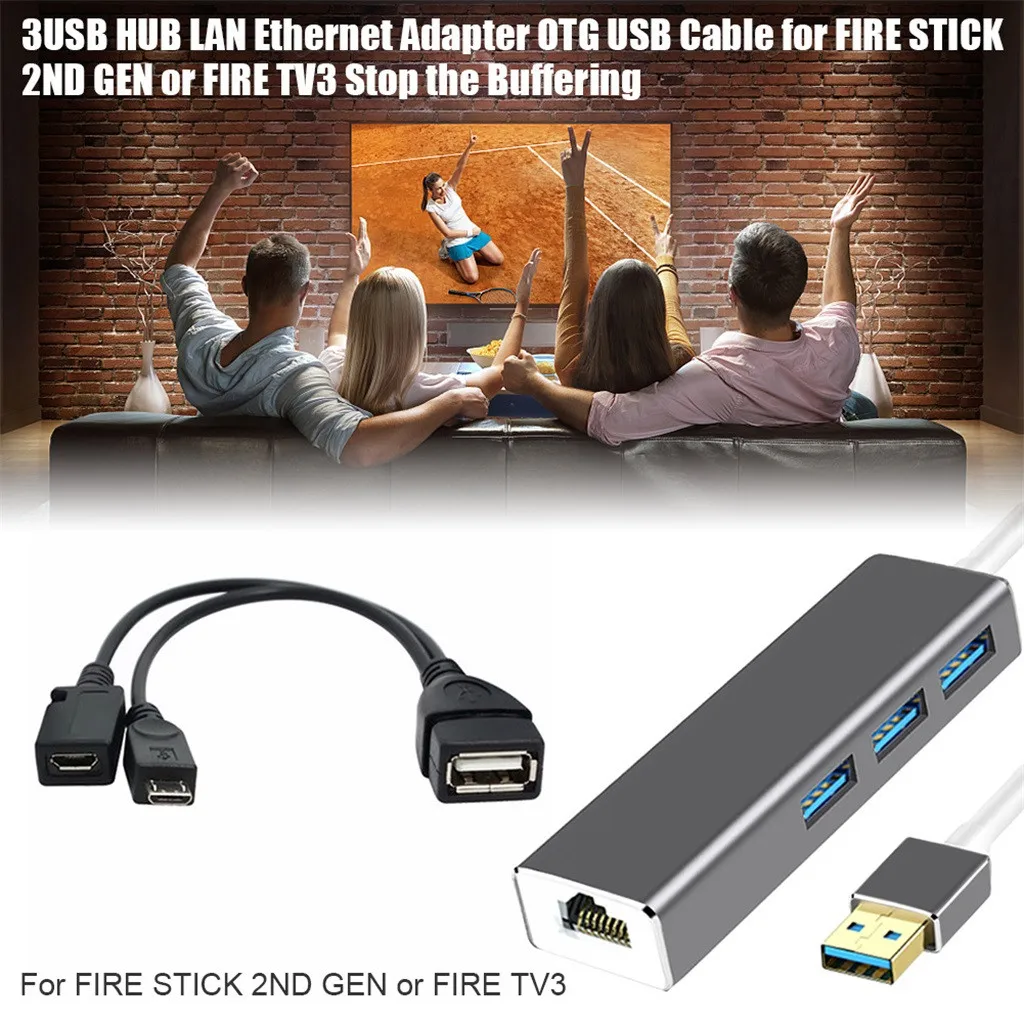 3USB концентратор LAN Ethernet адаптер OTG USB кабель для FIRE STICK 2-й или FIRE TV3