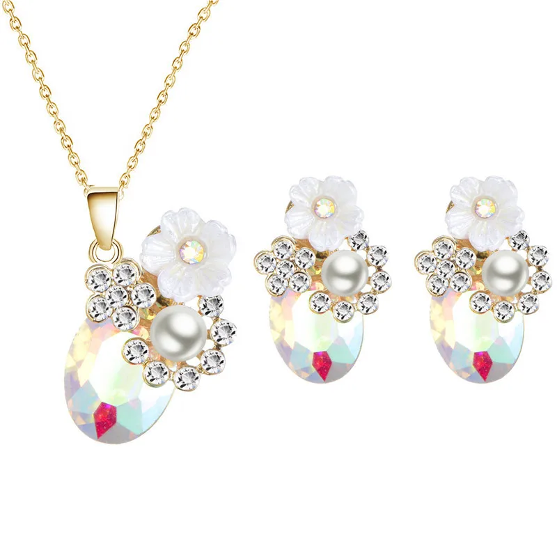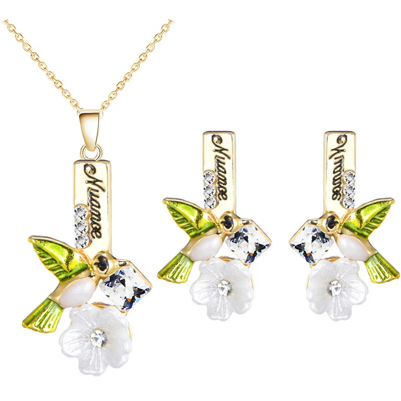 Женский набор украшений ожерелье серьги и кулон в виде бабочки с овальным