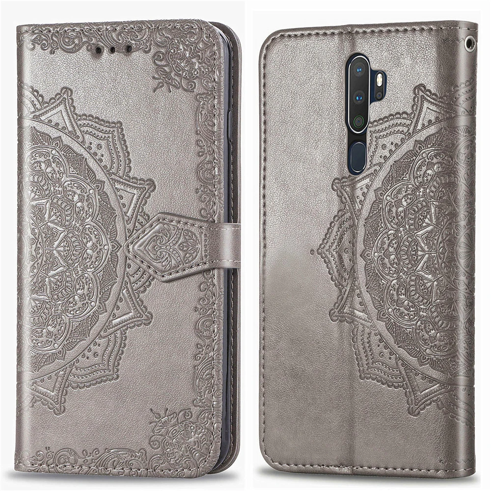 Роскошный кожаный чехол с откидной крышкой мандалы для OPPO A5 2020 A9 2020 A57 A7X, стильный однотонный чехол для телефона, чехол с функцией подставки