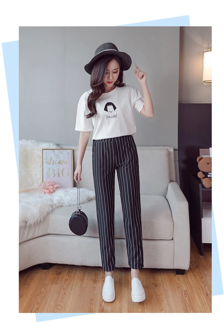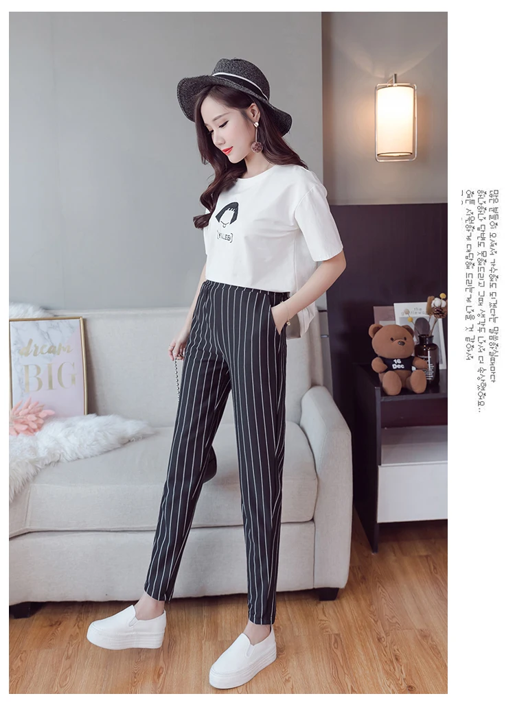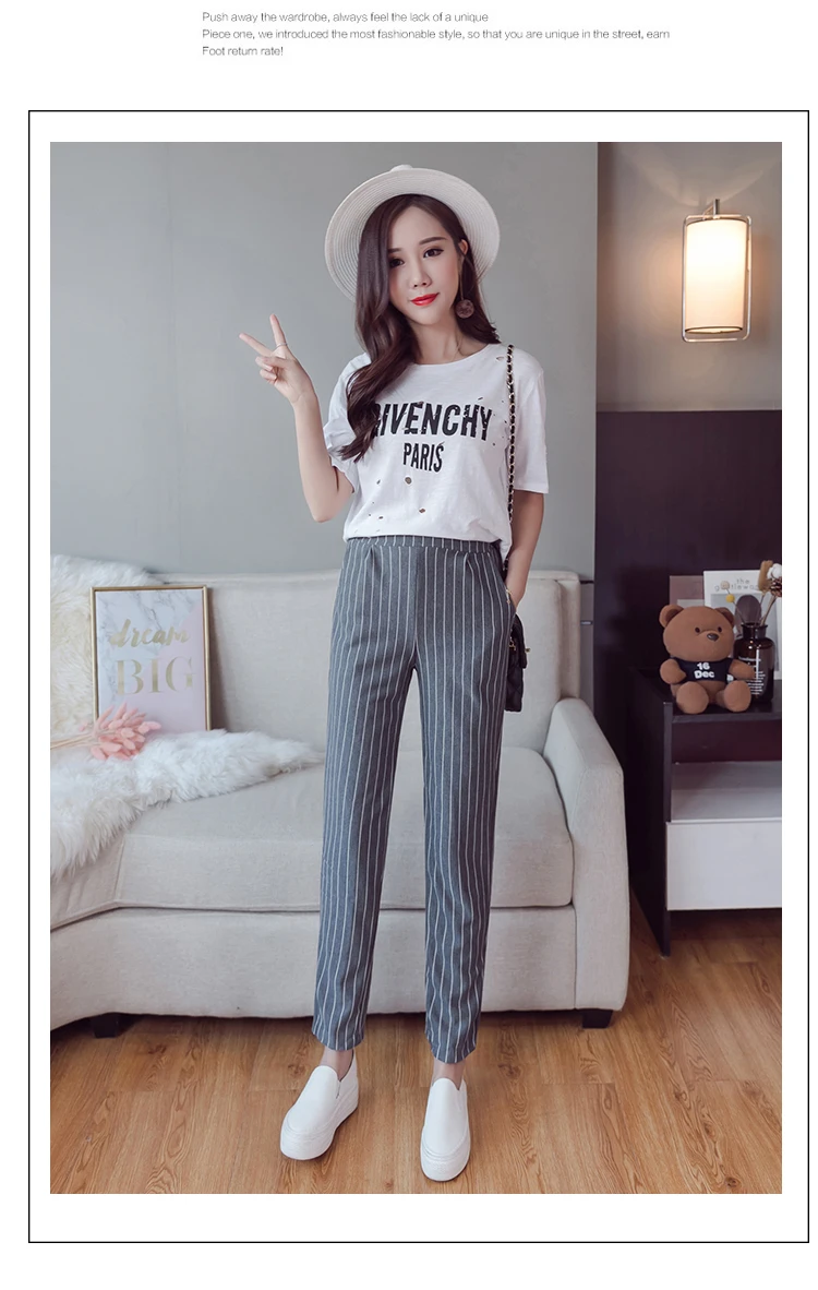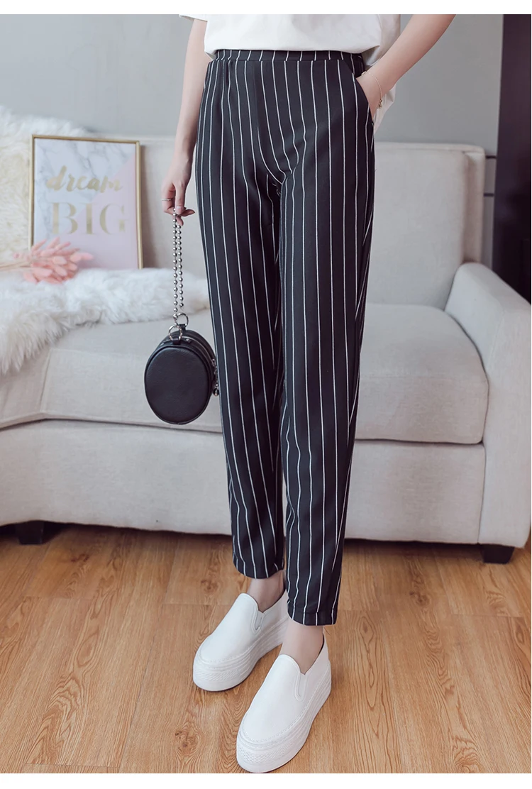 Новинка 2020, женские полосатые шаровары, летние свободные брюки с эластичной талией, женские брюки, узкие шаровары, pantalon femme DV878