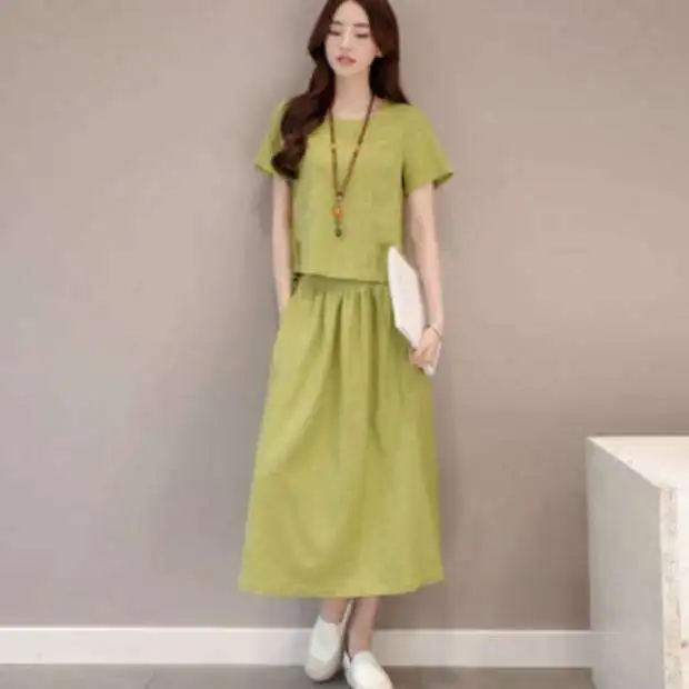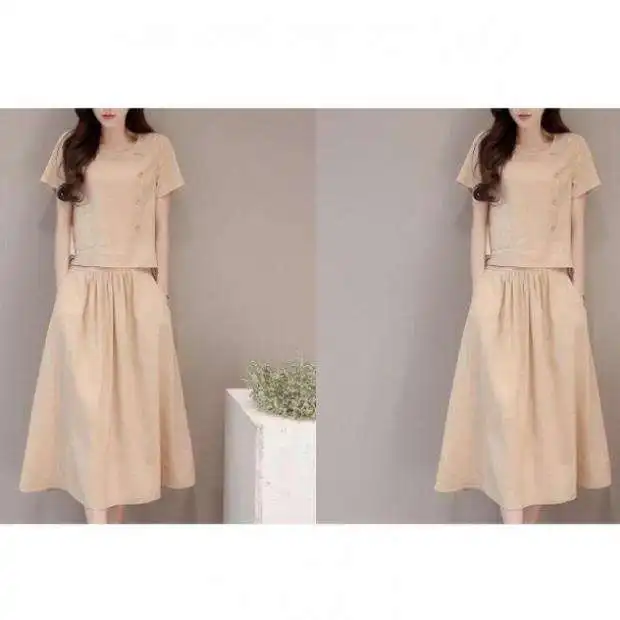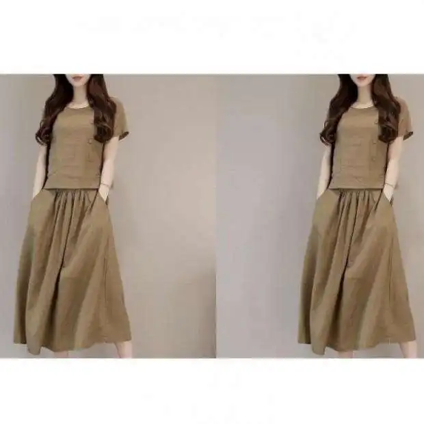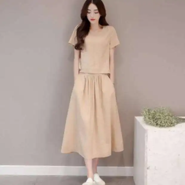 Комплект летней и весенней женской одежды, футболка s + длиной до икры, свободная юбка, два предмета, хлопковое винтажное платье, костюм AE906