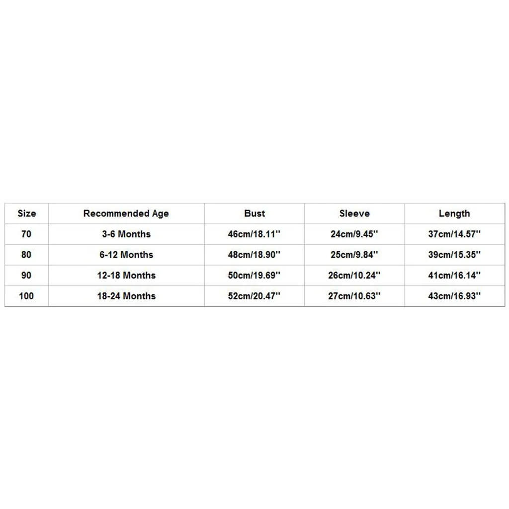| Size | Recommended Age | Bust | Sleeve | Length |