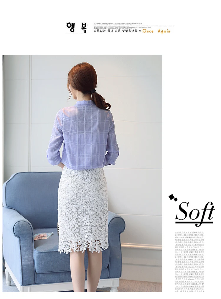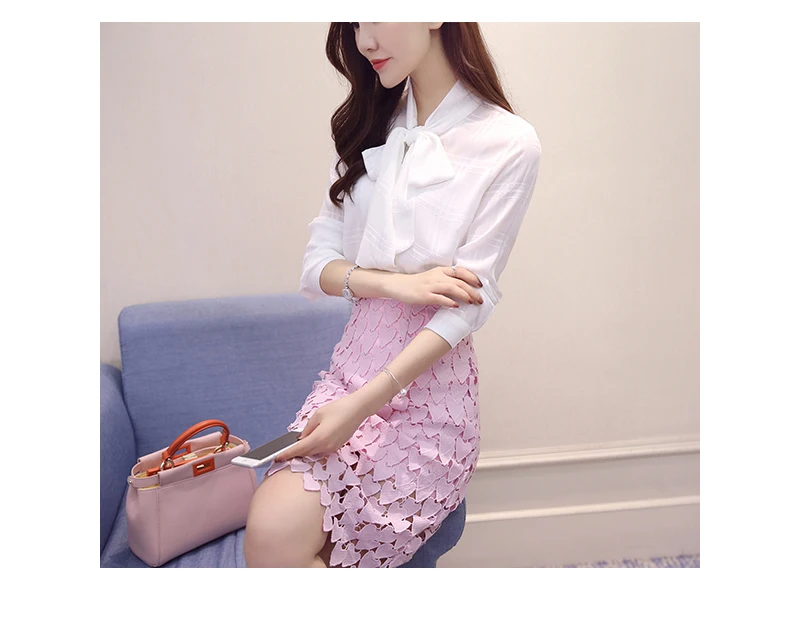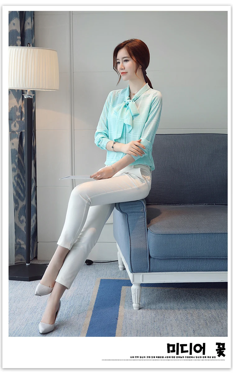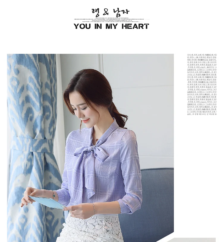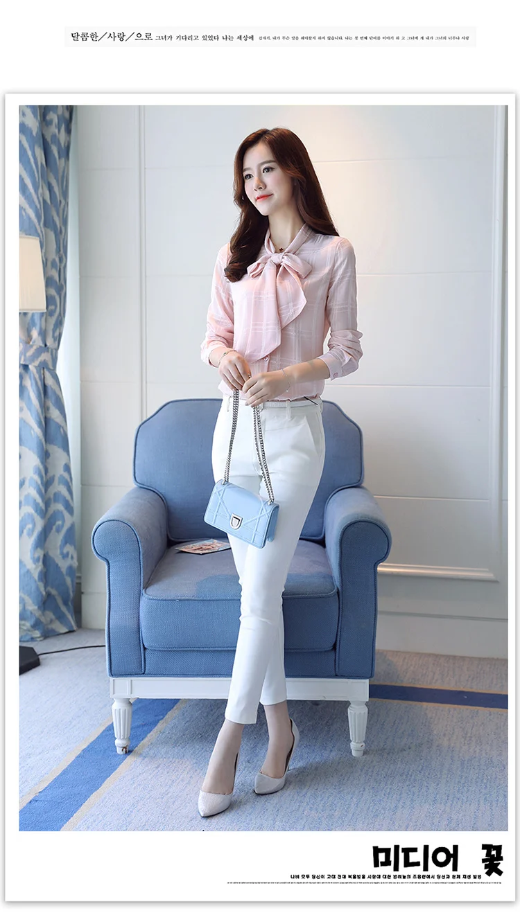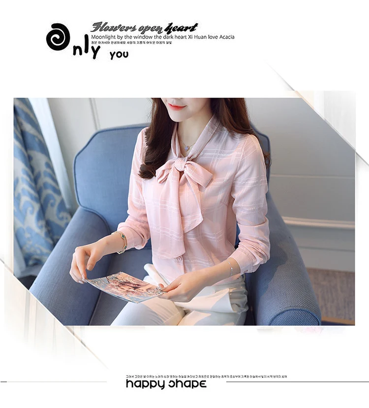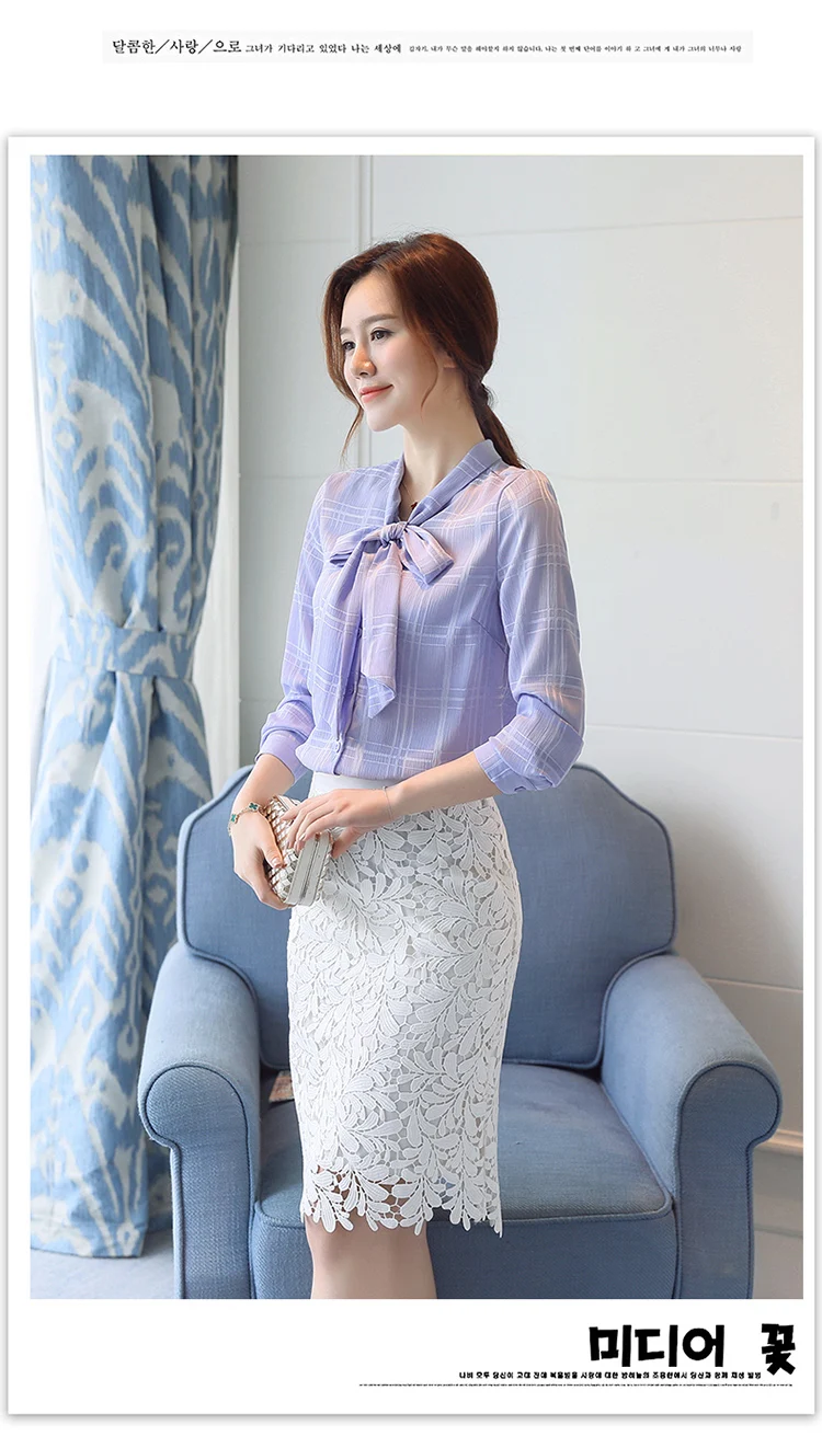 Clobee весна полный рукав с бантом плед рубашки блузки Новое поступление женская элегантная офисная одежда корейские шифоновые рубашки