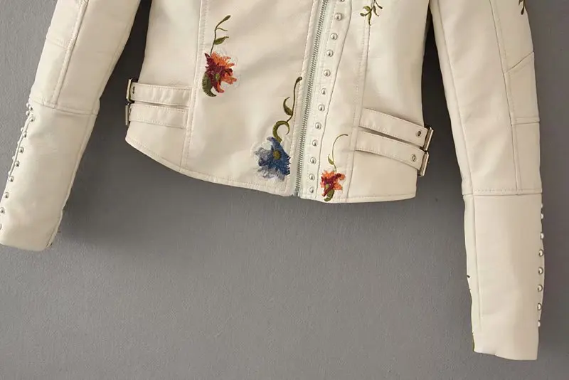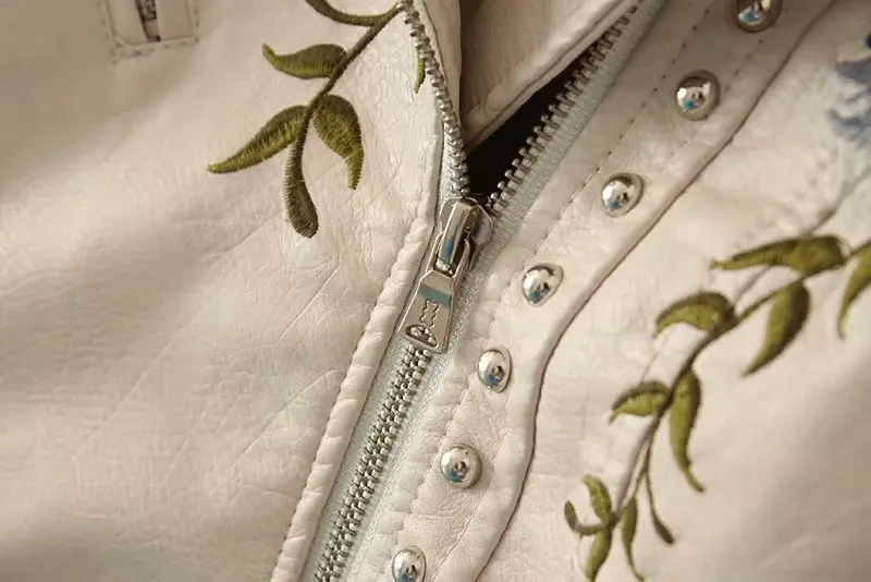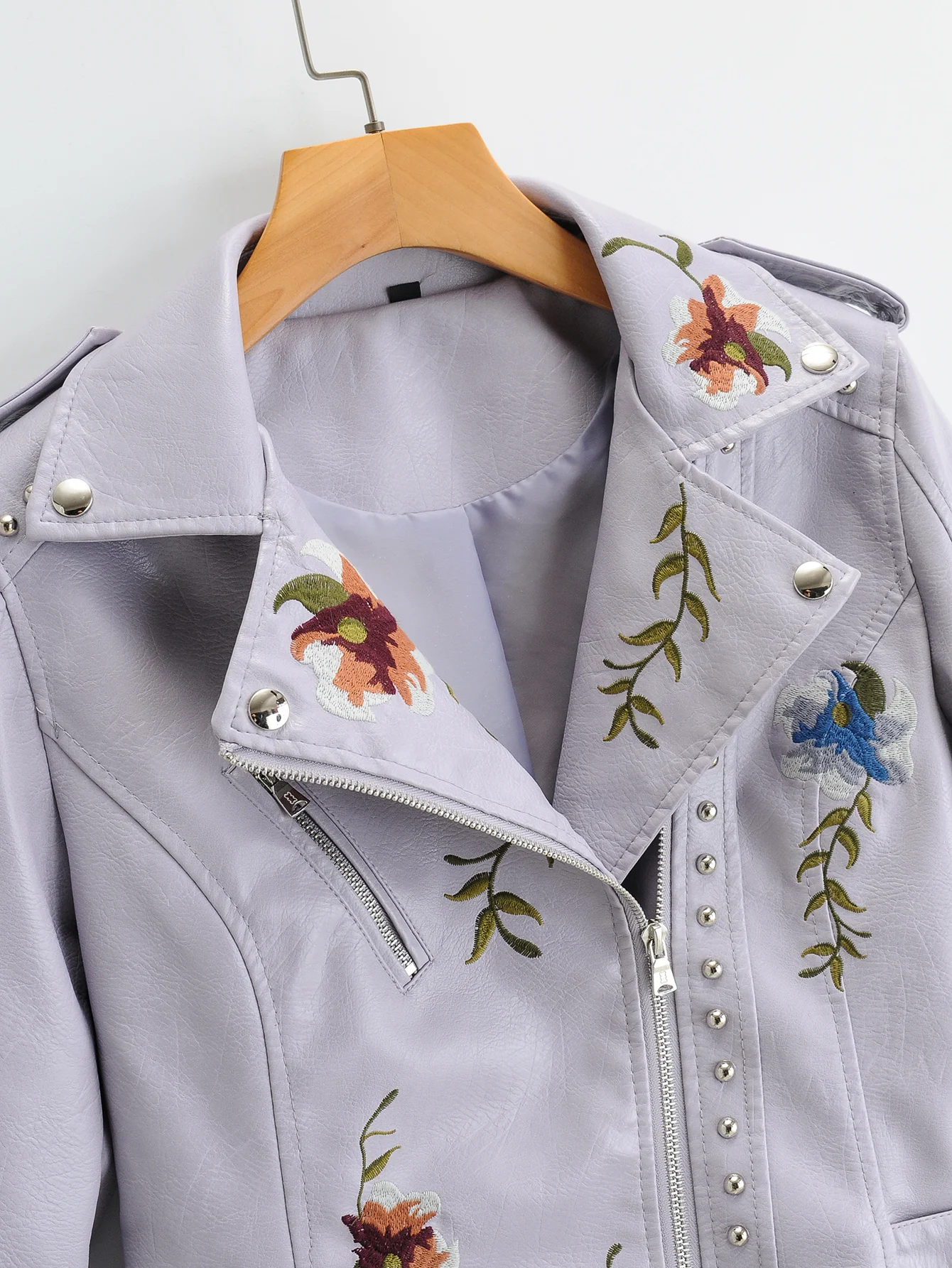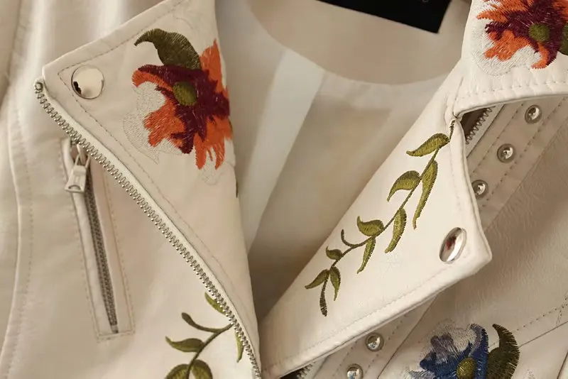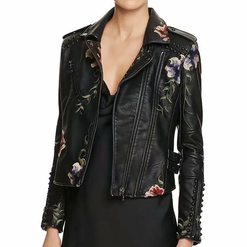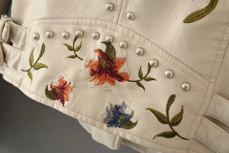 2021 Модные женские Куртки из искусственной кожи в стиле ретро с цветочной вышивкой и заклепками, женские черные куртки Voilet бежевого цвета в стиле панк, верхняя одежда, пальто