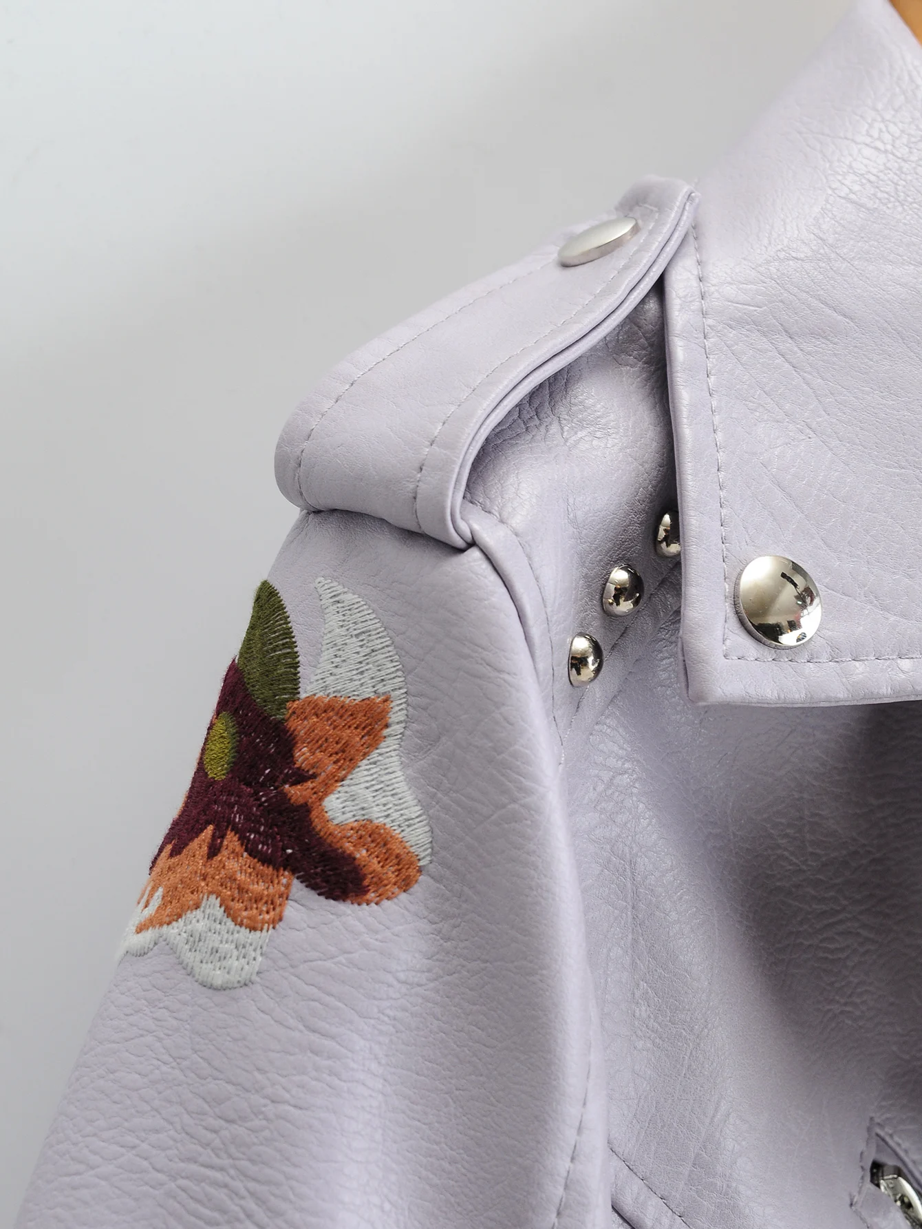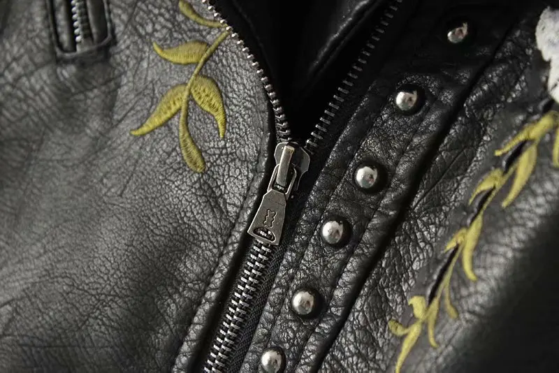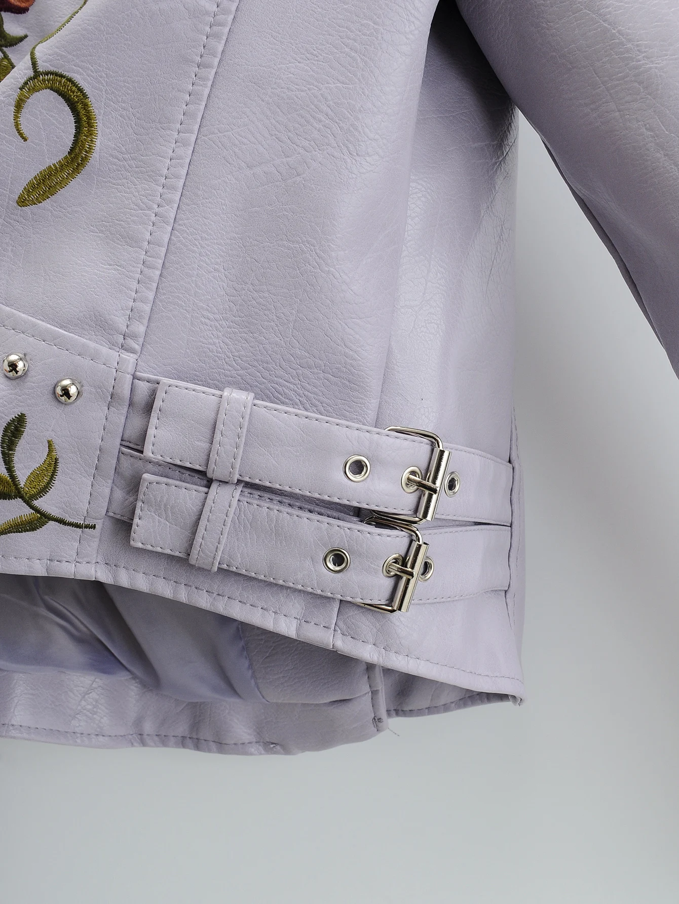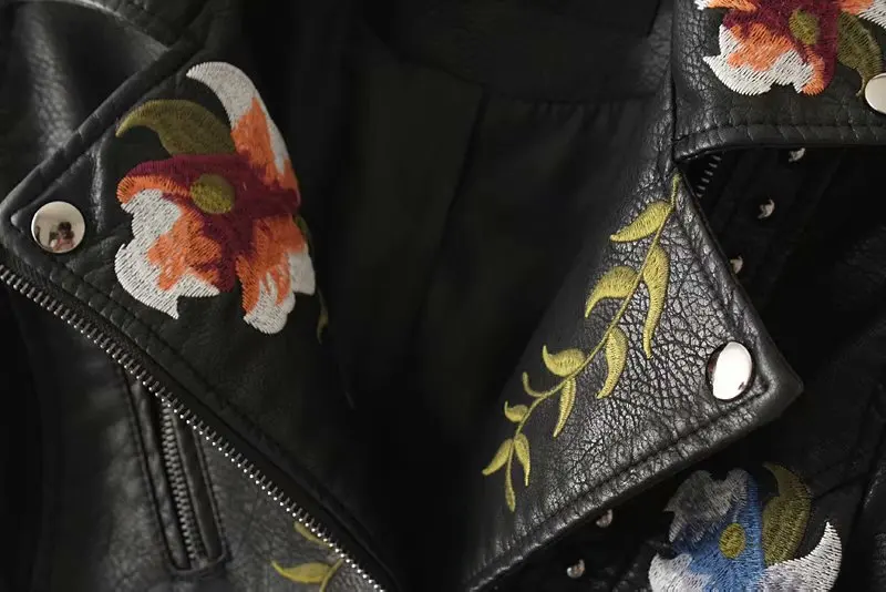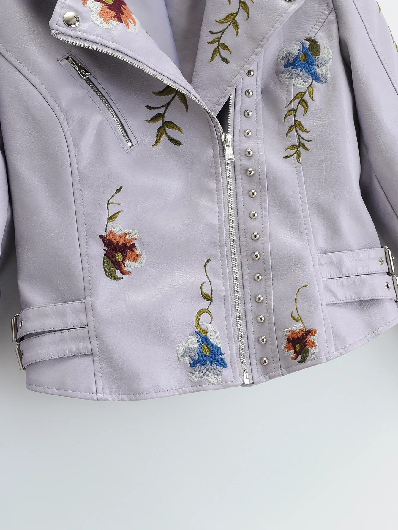 2021 Модные женские Куртки из искусственной кожи в стиле ретро с цветочной вышивкой и заклепками, женские черные куртки Voilet бежевого цвета в стиле панк, верхняя одежда, пальто