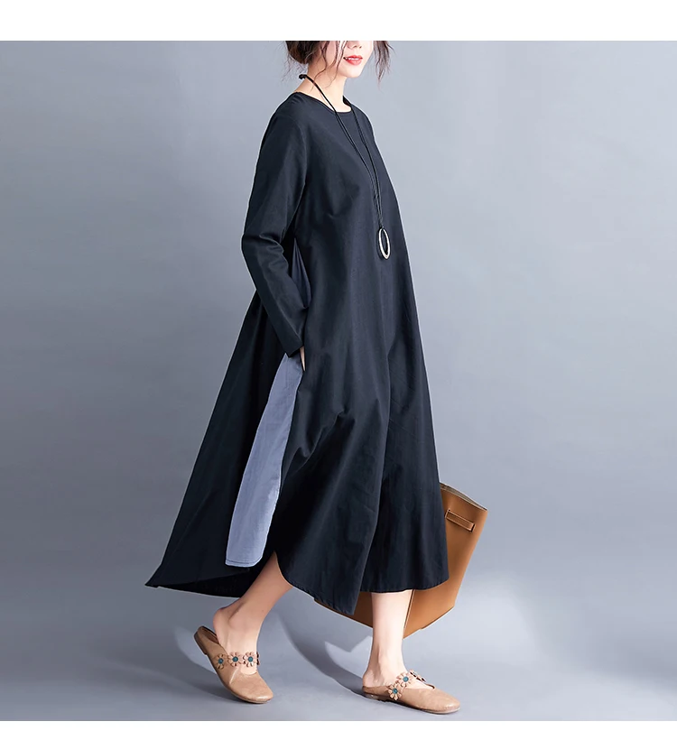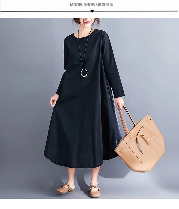 Черное хлопковое льняное винтажное платье размера плюс, женское повседневное Свободное длинное весеннее платье, элегантная одежда, платья 2020, robe femme AQ539