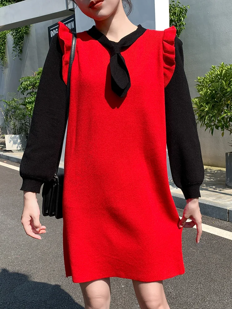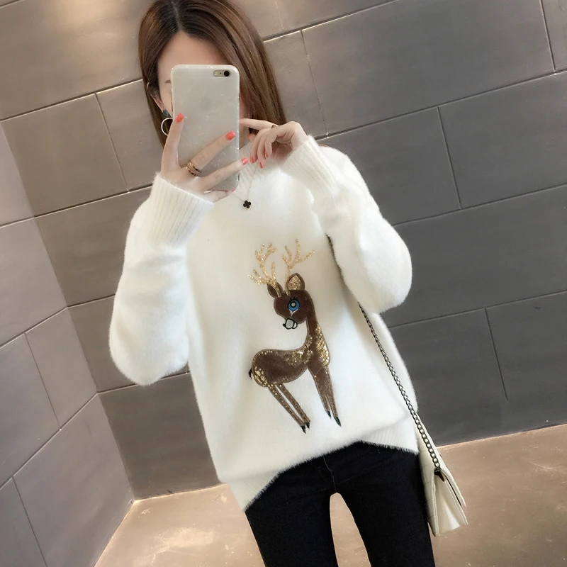 Женский свитер в стиле пэчворк теплый зимний и осенний с v-образным вырезом