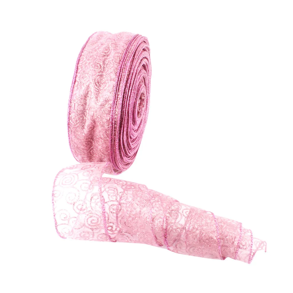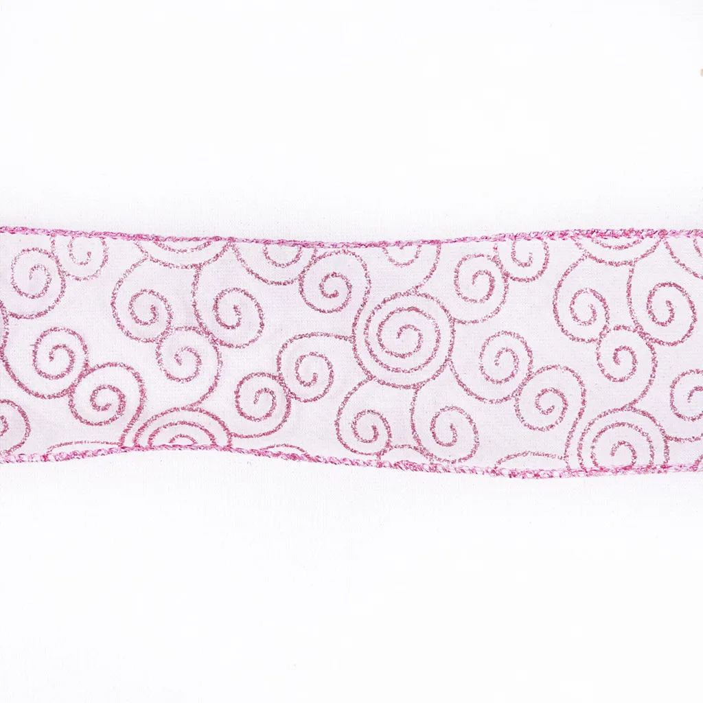 Christmas Tree Decorations 6.3*1000cm Pink Auspicious Print Decorative Ribbon
