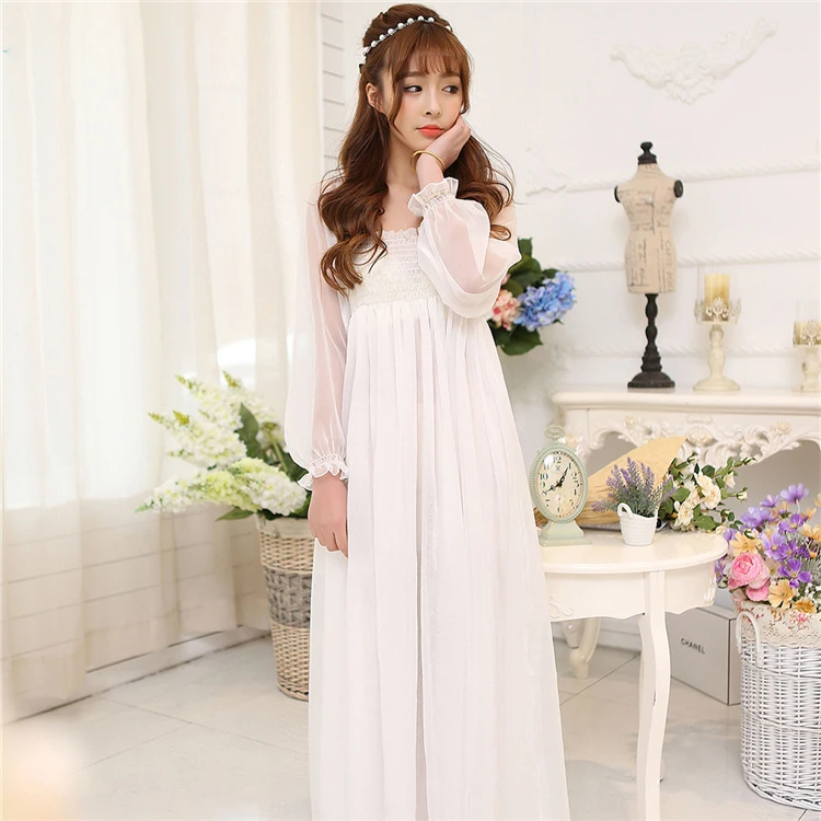 Женское шифоновое платье в пол, белое элегантное платье-макси в стиле Фэнтези с длинным рукавом-фонариком, WF108