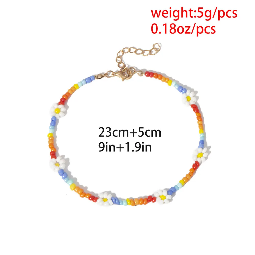Fashion Trendy Original Bohemian Multicolor Small Flowers Beizhu Jewelry Set Girl Girl Jewelry Handmade Style Necklace Ring