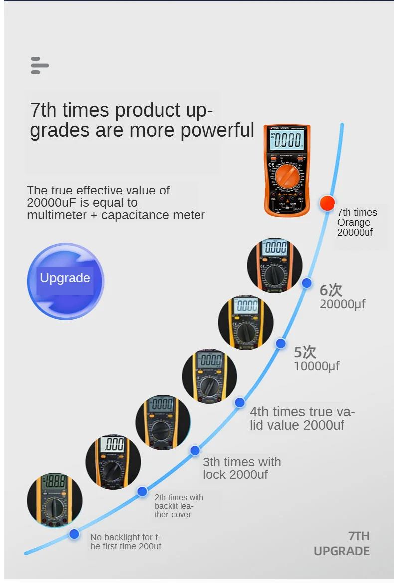 Функция: режим удержания, подсветка, Автоматическое отключение питания, тест на Зуммер непрерывности с ЖК-дисплеем, защита от перегрузки, защита от короткого замыкания, транзистор, диодный тест