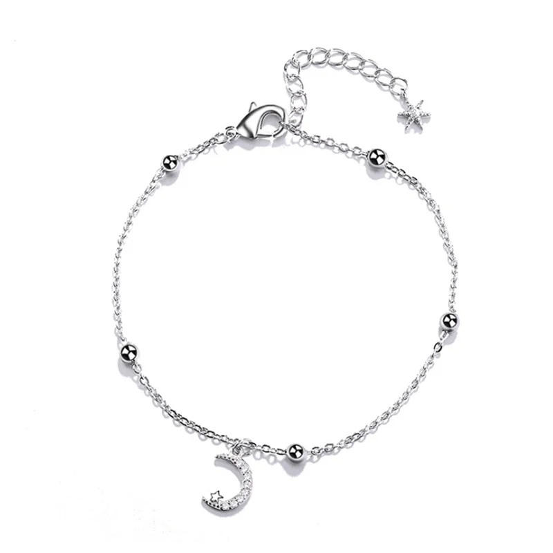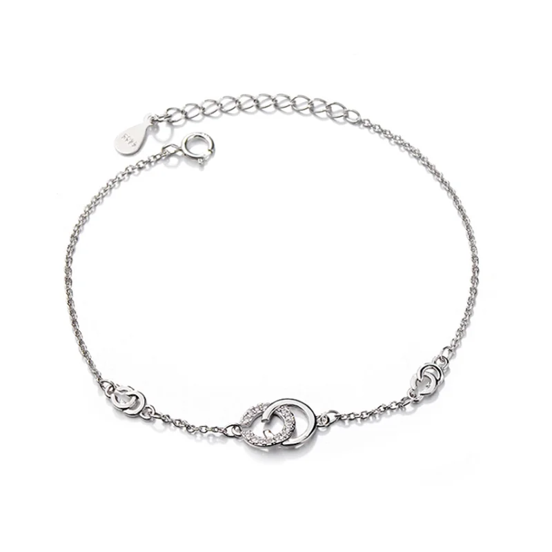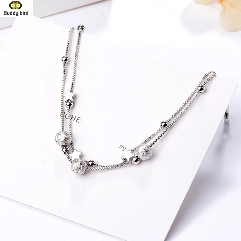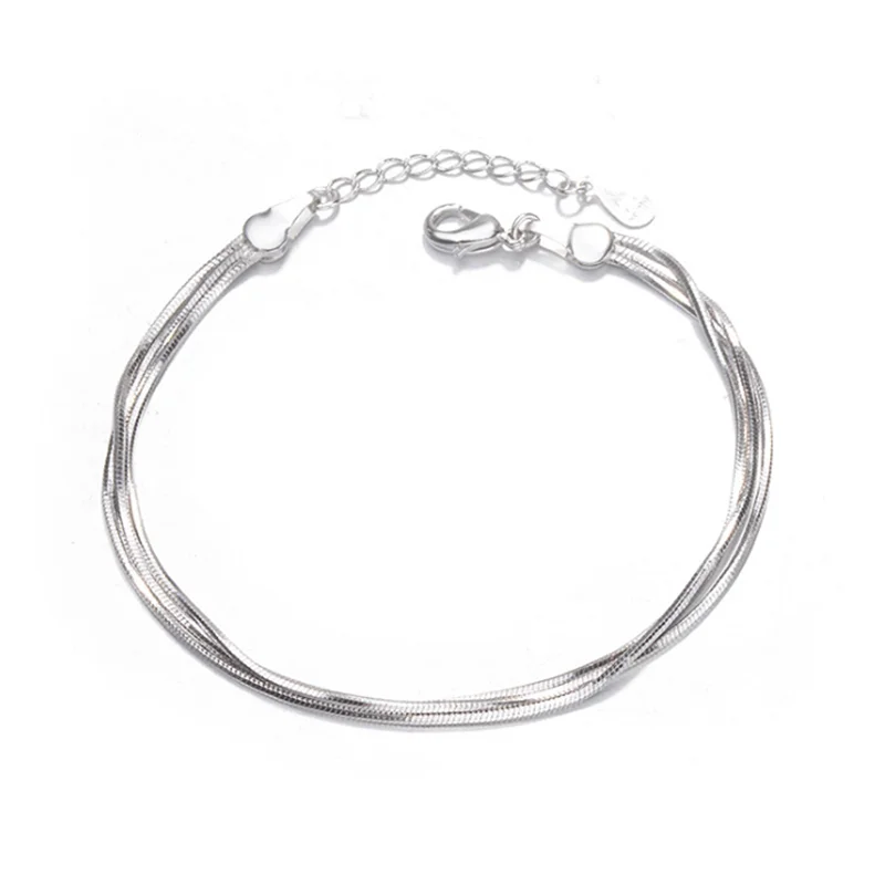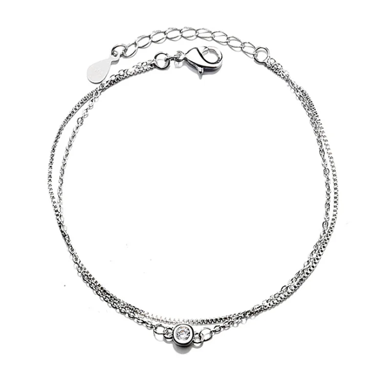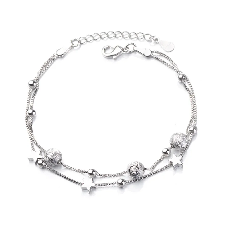 Очаровательные браслеты для женщин, браслет из стерлингового серебра 925 пробы для женщин, бусы, Двойная Цепочка, браслеты дружбы, ювелирные изделия