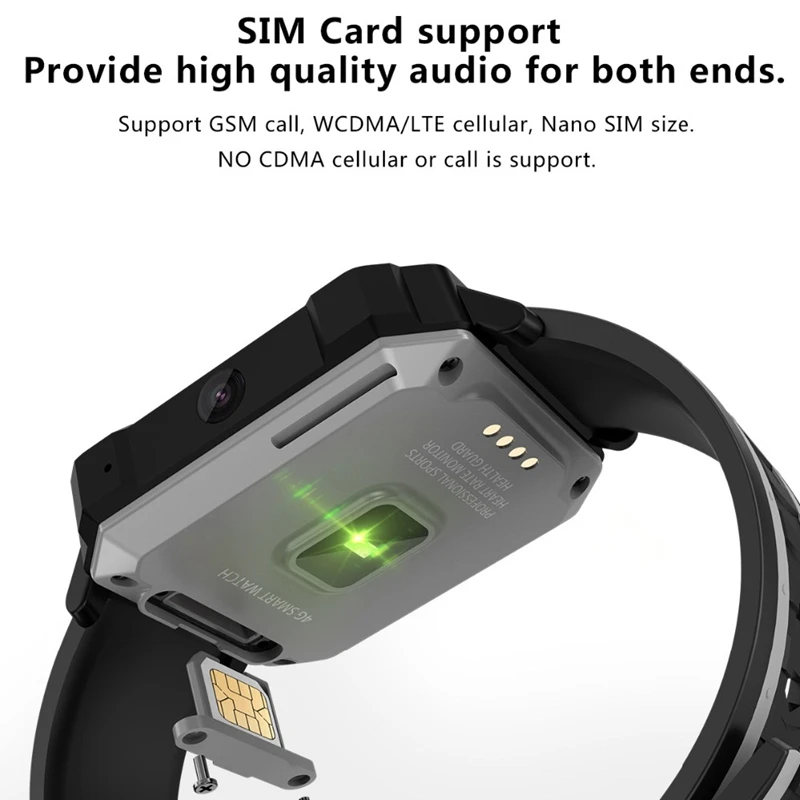 Точки: 4G сети, Wi-Fi, IP68 водный resisst, gps-навигация, 5 м пиксель, монитор сердечного ритма, несколько спортивных режимов, профессиональный анализ данных о здоровье, новые часы OS