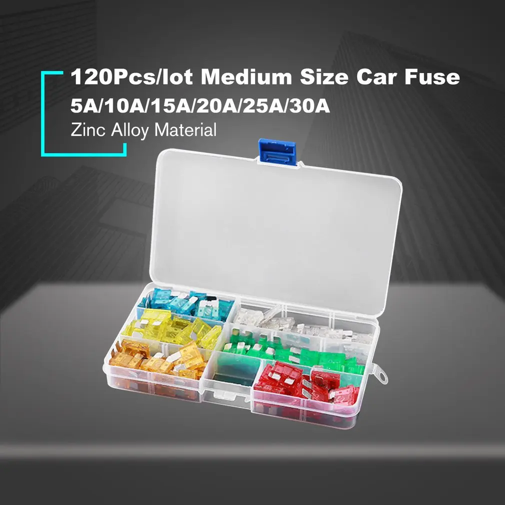 120 шт Набор для замены лезвий предохранителя для автомобиля, алюминиевый материал, маленький размер 5A/10A/15A/20A/25A/30