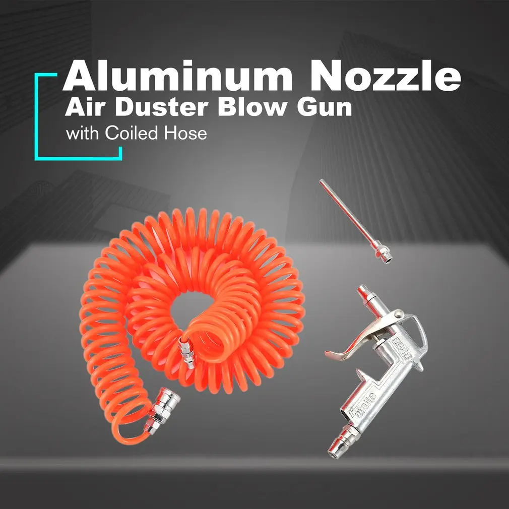 1. Этот пневматический набор инструментов для уборки пыли не только оснащен ударным пистолетом, но также имеет полиуретановый спиральный шланг и двойной мужской резьбовой стержень, поэтому удобно, что вам не нужно покупать дополнительные аксессуары.