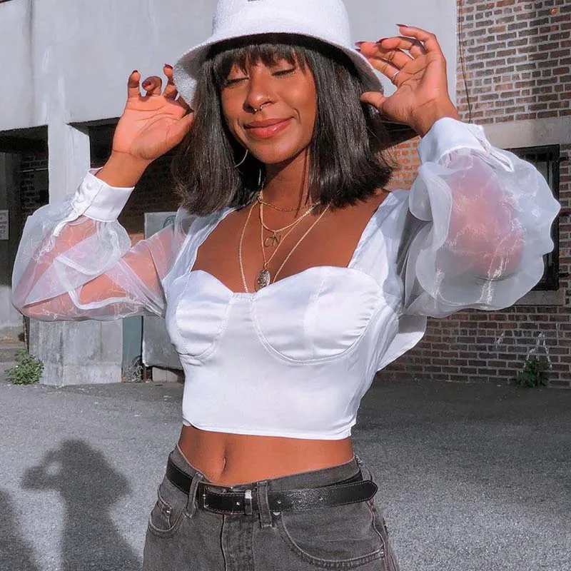 Новинка Весна 2020 блузки MUMUZI с длинным рукавом и галстуком бабочкой Милая рубашка