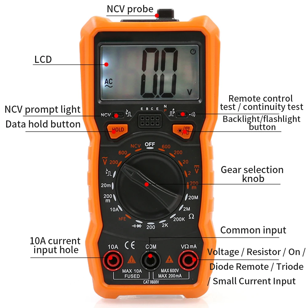 Цифровой мультиметрRM113D6000 единиц мультитестерDC/AC Измеритель Напряжения ручной Амперметр Ом диод NCV тестер