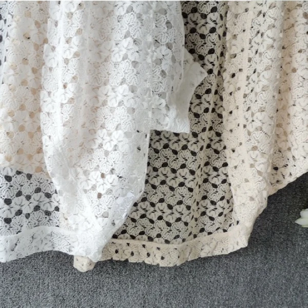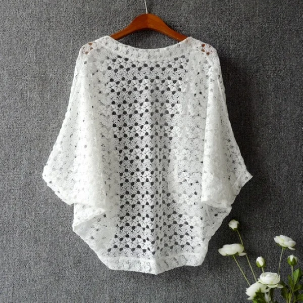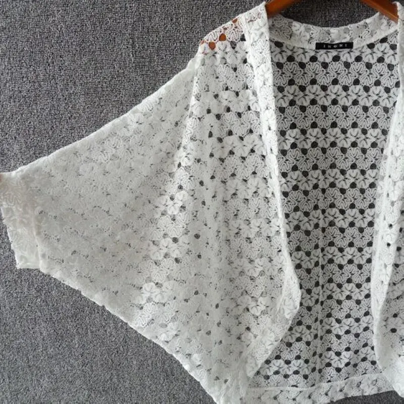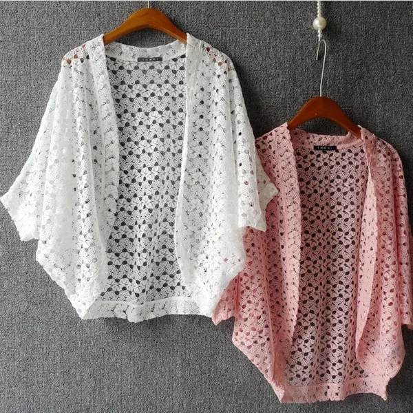 Женский кружевной кардиган в японском стиле, милые кружевные топы с рукавами «летучая мышь», летние вязаные кардиганы черного/белого/розового цвета WF873 <