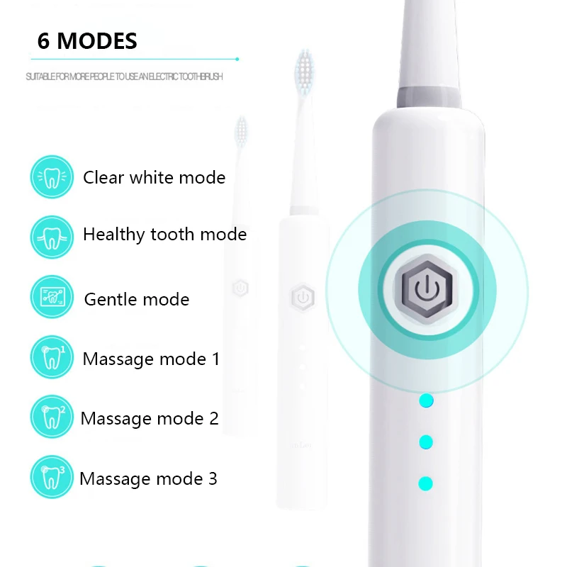 Основные функции: ● Высокоэффективный Магнитный левитационный двигатель для эффективной очистки зубного зазора и удаления зубного налета ● Кисть для посадки без металла высокой плотности не царапает десны и не повреждает поверхность ● 6 режимов очистки для вашего свободного выбора ● Отличная зубная щетка для путешествий-супер светильник ● Компактный и интегрированный корпус, класс водонепроницаемости IPX7 Посылка включает в себя: 1 x Зубная щётка ручка 2 x насадки для зубной щетки 1 х USB Зарядное устройство