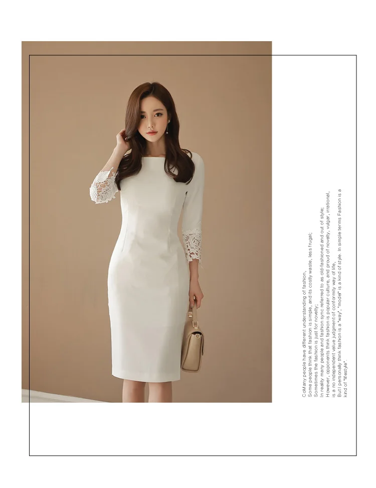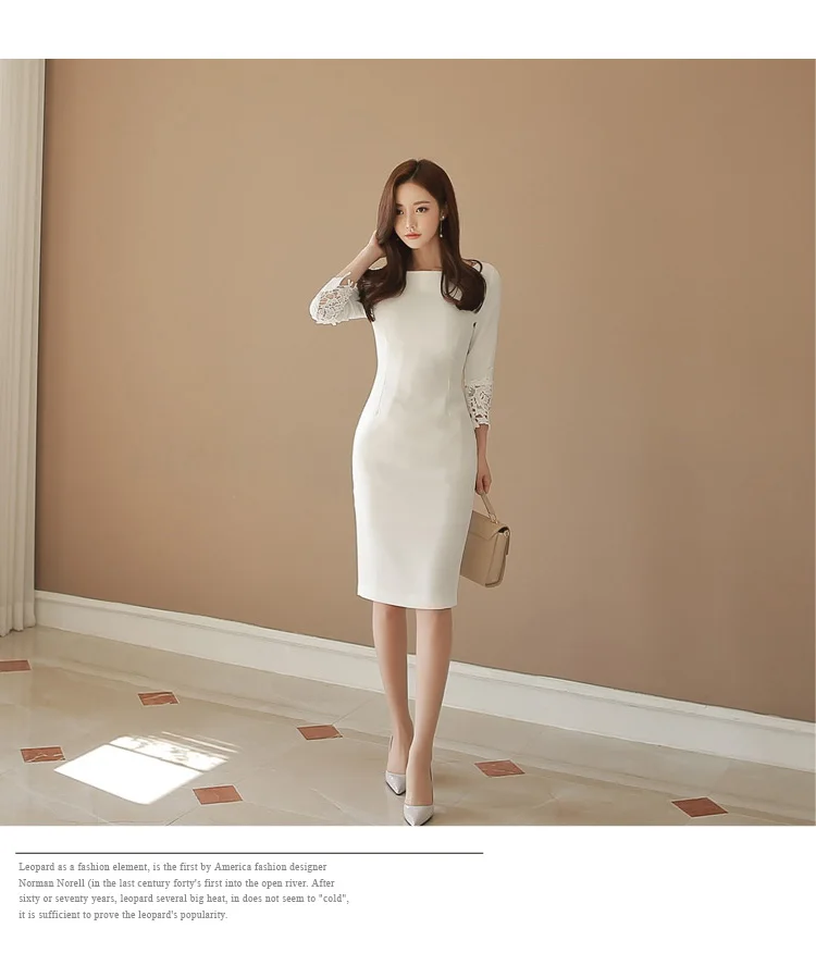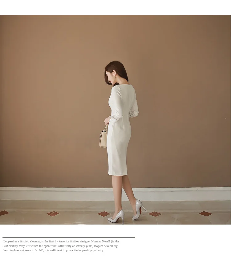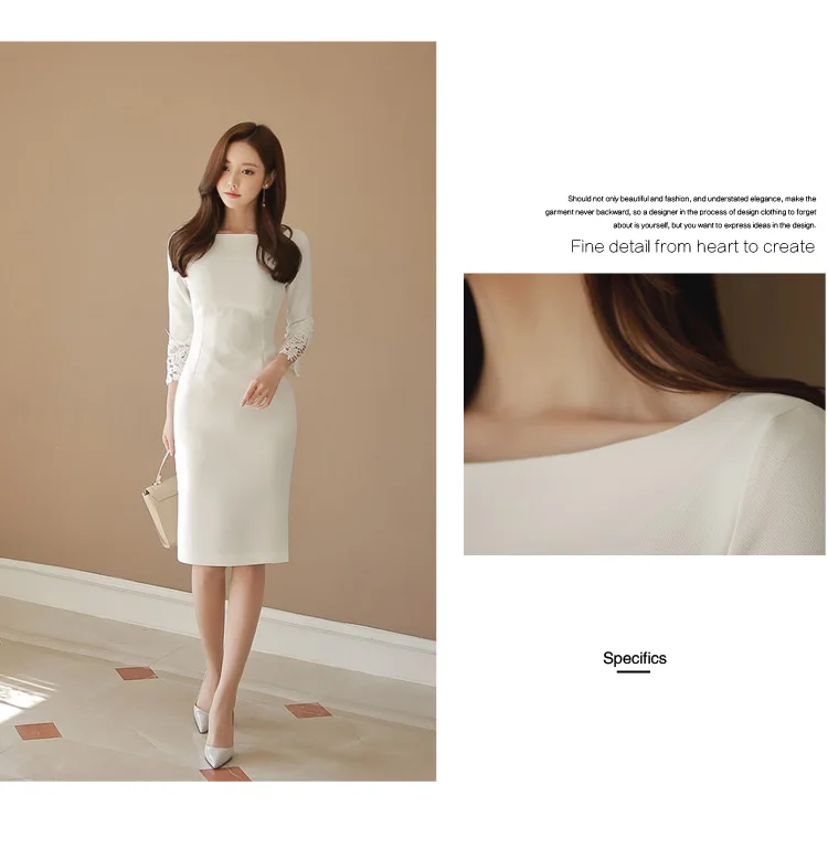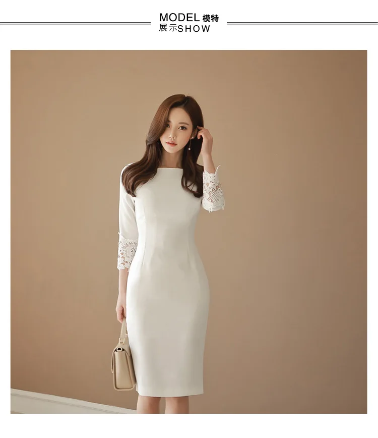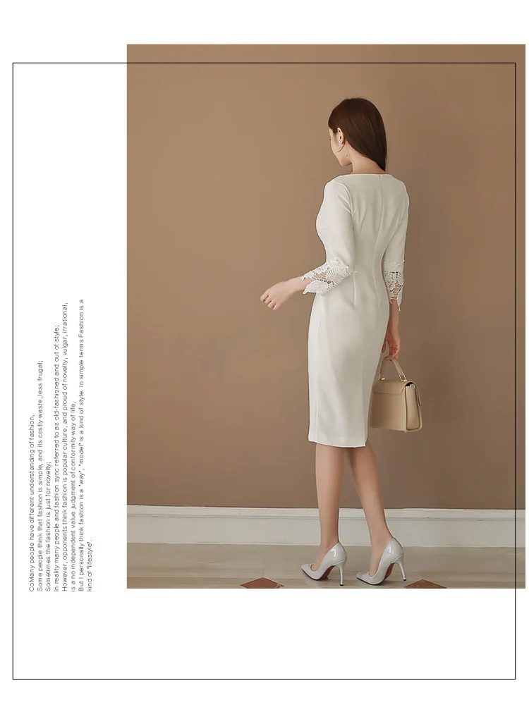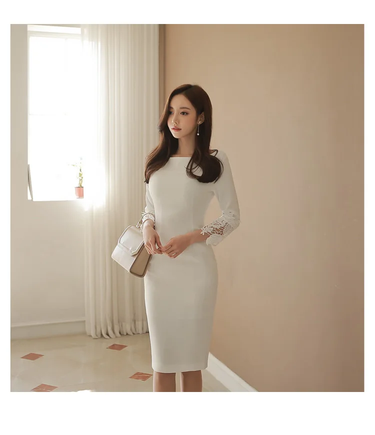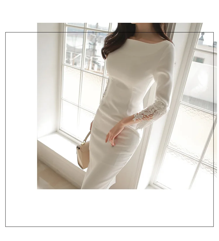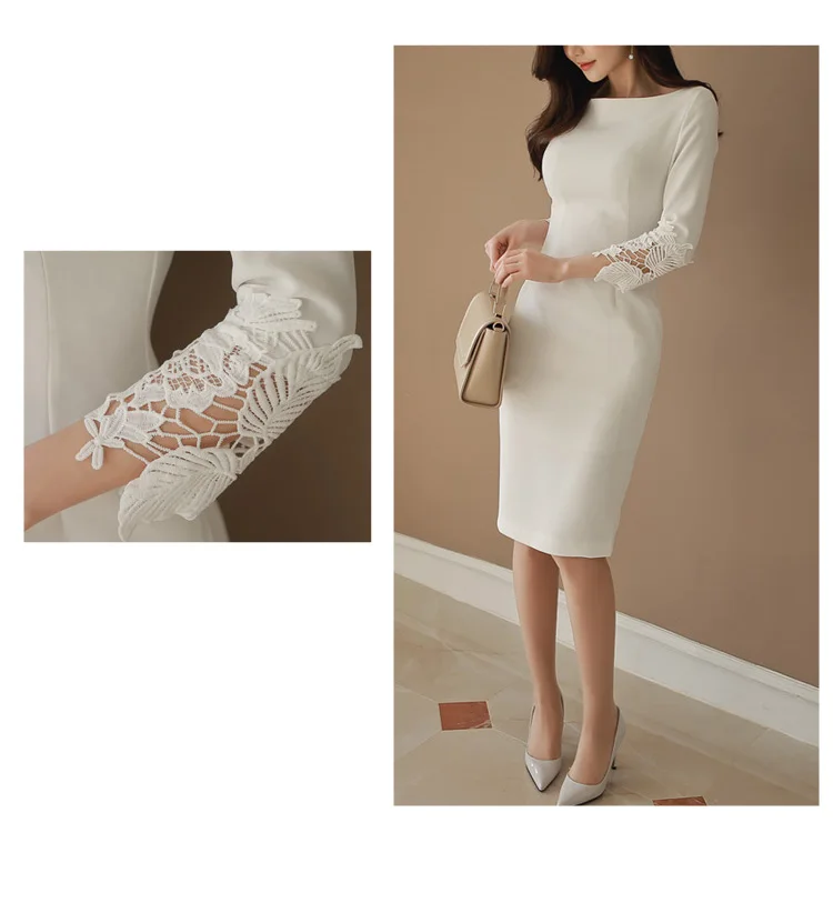 Женское кружевное лоскутное платье, белое офисное платье для весны и осени 2020, однотонное винтажное облегающее платье знаменитости, AQ103